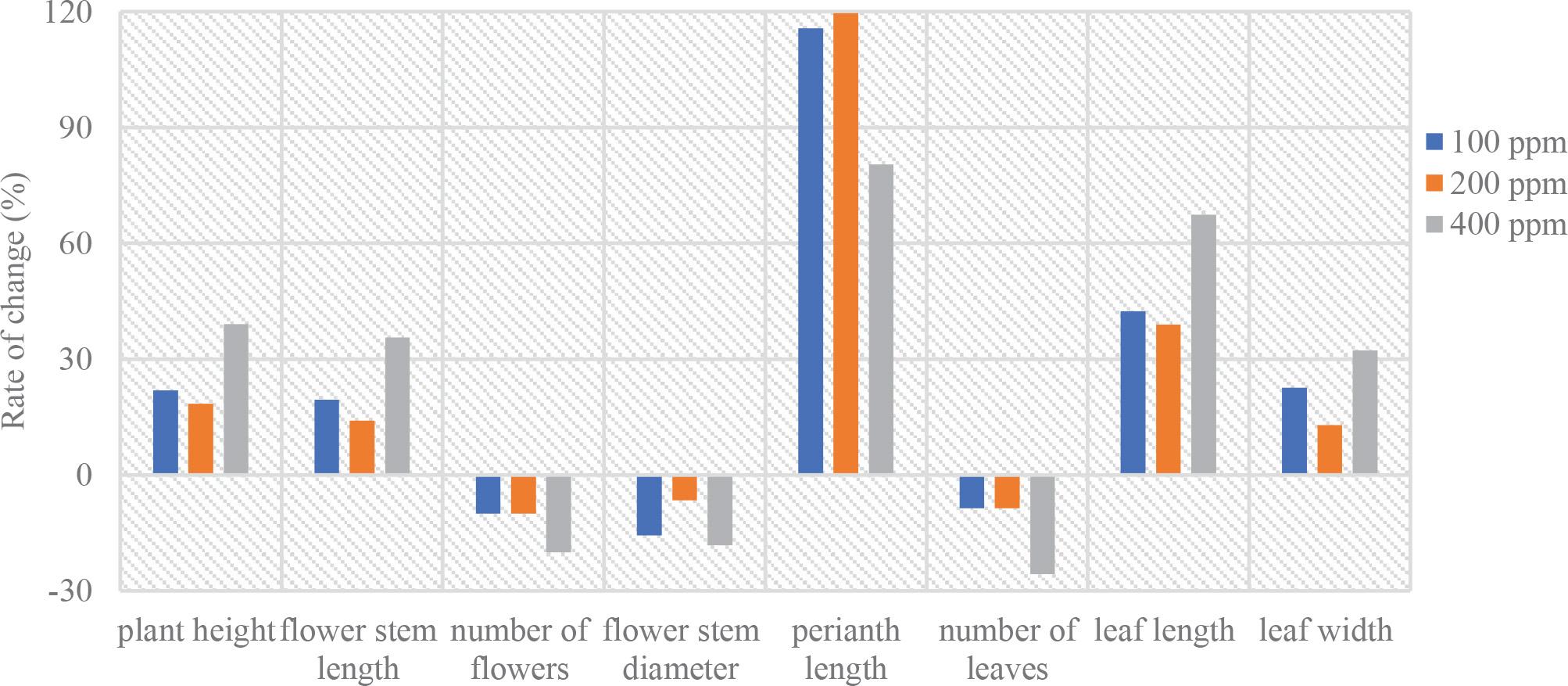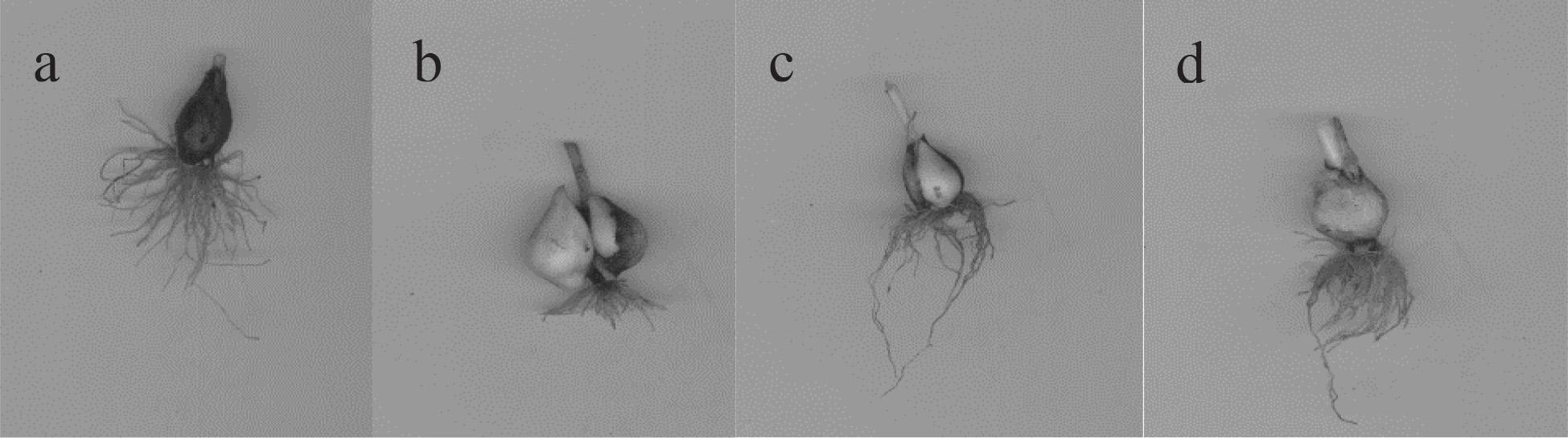 | Flower stem length (cm) | Number of flover | Flower stem diameter (mm) | Perianth length (cm) | Number of leaves | Leaflength (cm) | Leaf width (cm) | Mother bulb diameter (mm) | Number of bulblet | Bulblet diameter (mm) | Bulblet weight (g) | N (%) | P (%) | K (%) | Ca (%) | Mg (%) | Fe (mg · kg−1) | Cu (mg · kg−1) | Zn (mg · kg−1) | Mn (mg · kg−1) | Root length (cm) | Root surface area (cm2) | Root diameter (mm) | Root volume (cm3) | Number of tips | Number of forks | Number of crossings | |