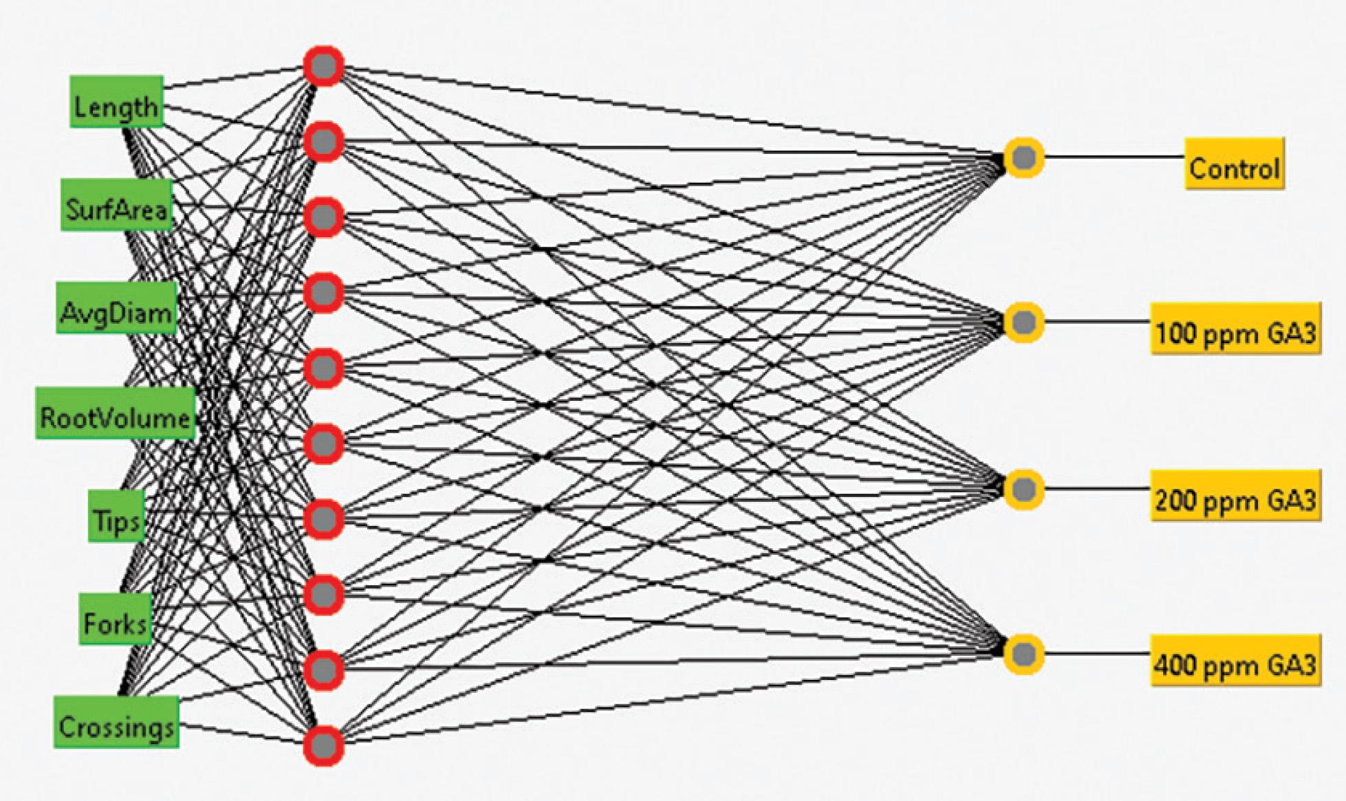 Prediction performance of ML models representing the relationship between GA3 variables and the change of root architectural features of T_ saxatilis_