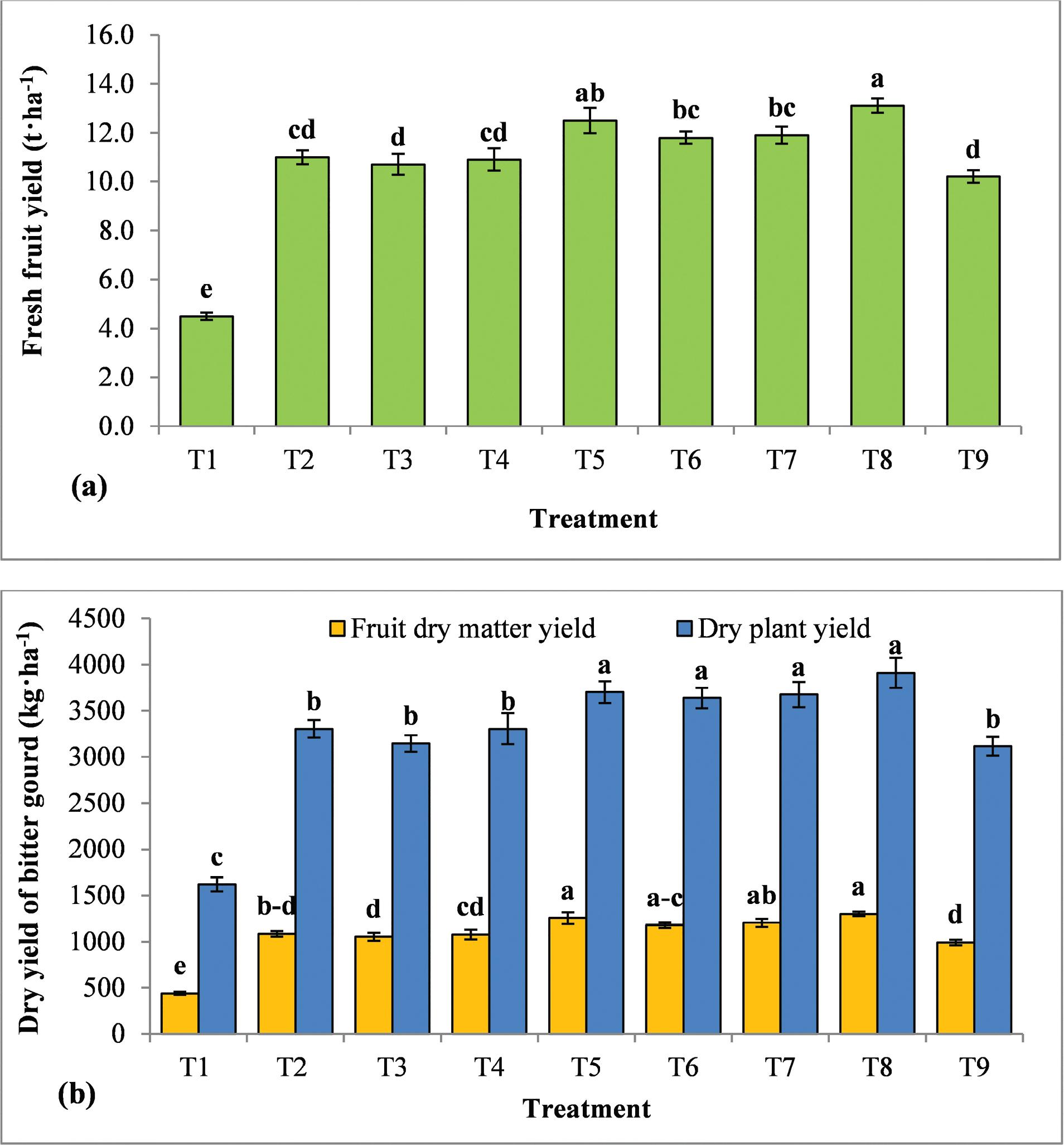 Effects of year of cultivation (Y), combined organic and inorganic fertilisers (T) and their interaction (Y × T) on the quality traits of bitter gourd_