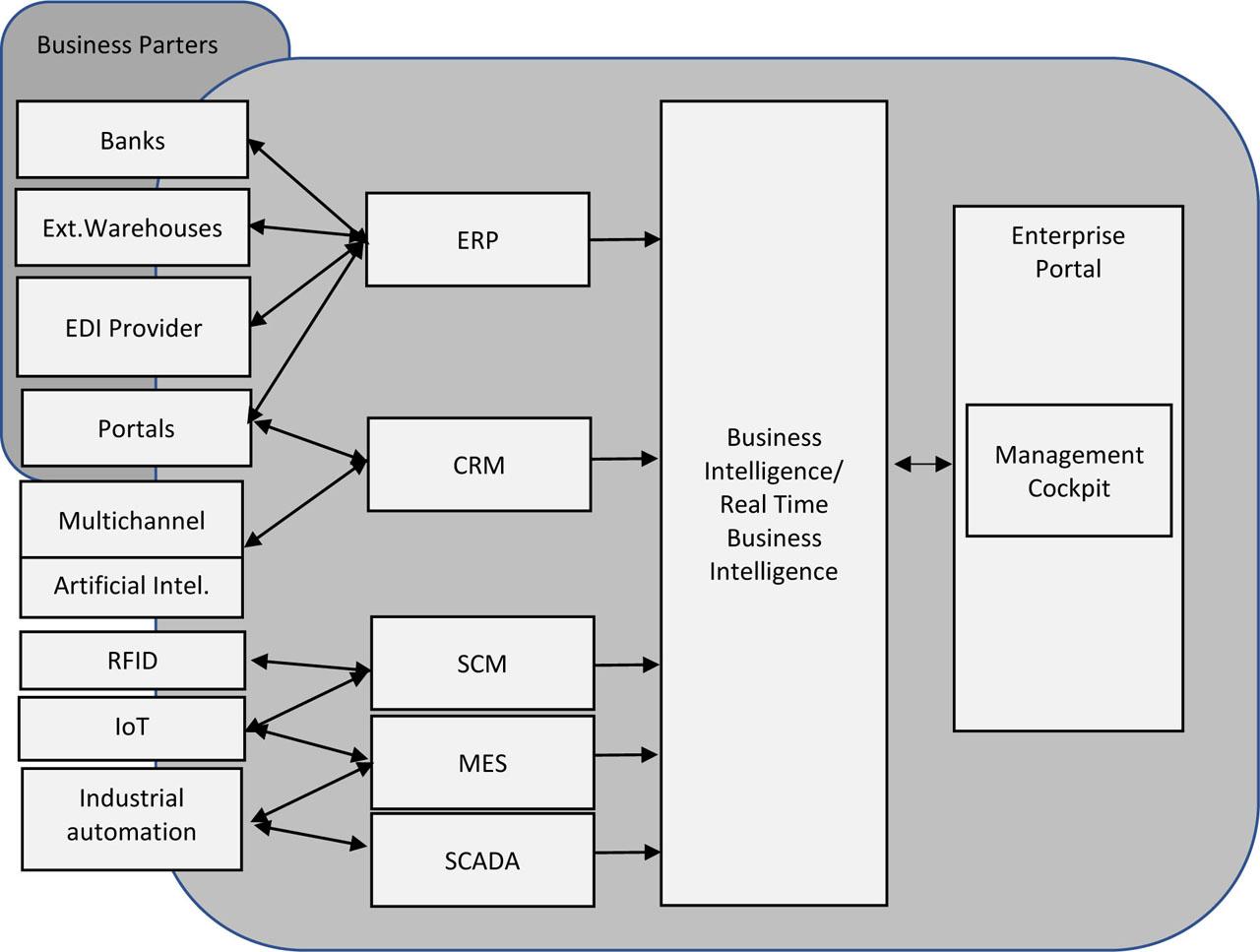 In order not to complicate the image, possible integrations between ERP, CRM, SCM and other such systems were omitted.