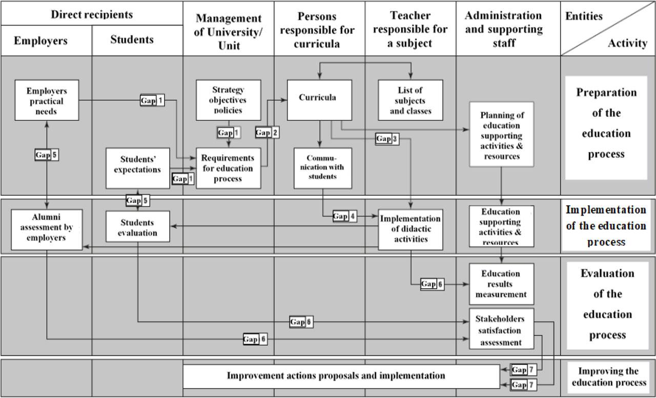Gap 5 relates to the comparison of the conducted education process and its results as perceived by stakeholders,