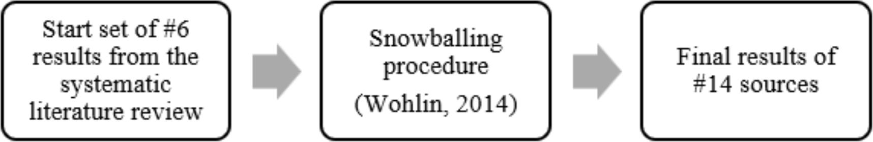Wohlin’s (2014) snowballing technique occurred after the database searches and filtering. Stage 6 (Figure 2) results were an initial set for the snowballing technique (see Figure 3). One of the main advantages of snowballing is that it finds further references from relevant papers. Snowball sampling involves scanning study references to identify relevant papers. The citation analysis could result in examining many papers, especially those with numerous citations. In this study, snowball sampling found additional resources, for a total of 14 results for the analysis as shown in Appendix A.