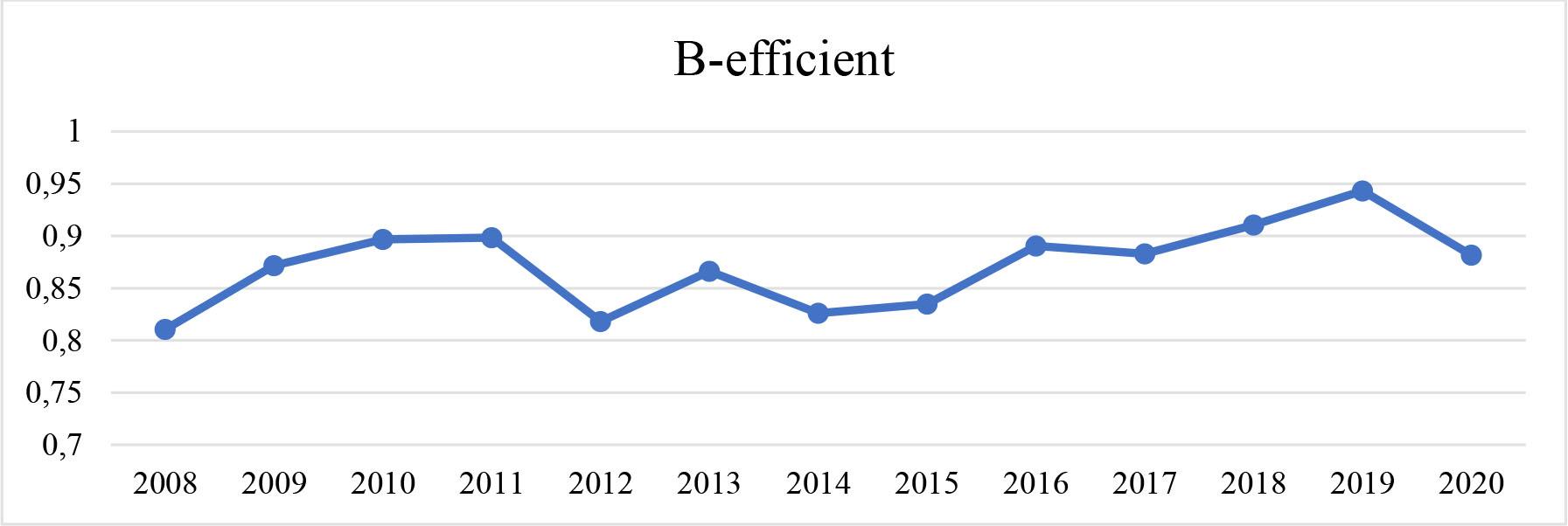 Average of B-efficiency of banks by year (Source: Authors’ own research)