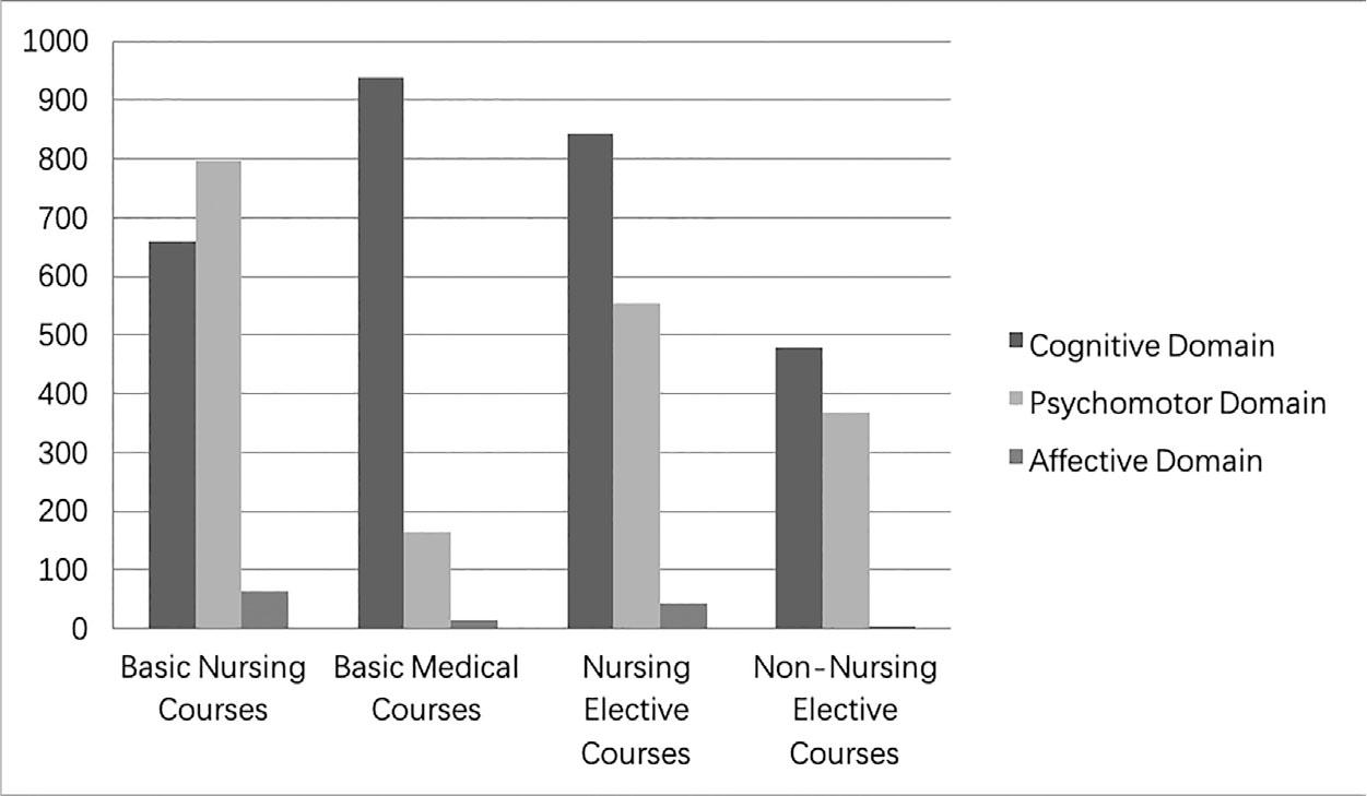 According to the results of this study, half of the basic nursing courses were psychomotor learning outcomes. According to this result, it appears that approximately half of the outcomes of the nursing curriculum focus on measuring psychomotor outcomes alone.