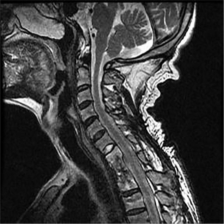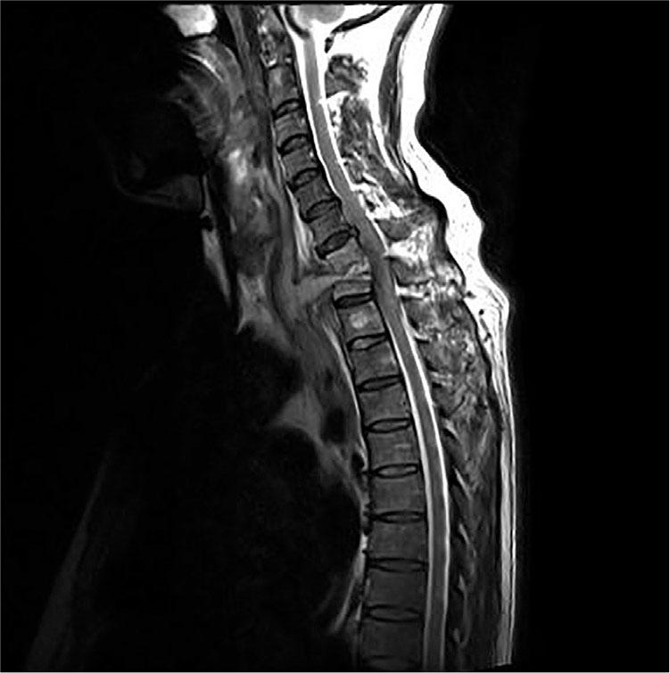 MR result of the thoracic vertebra before the operation.