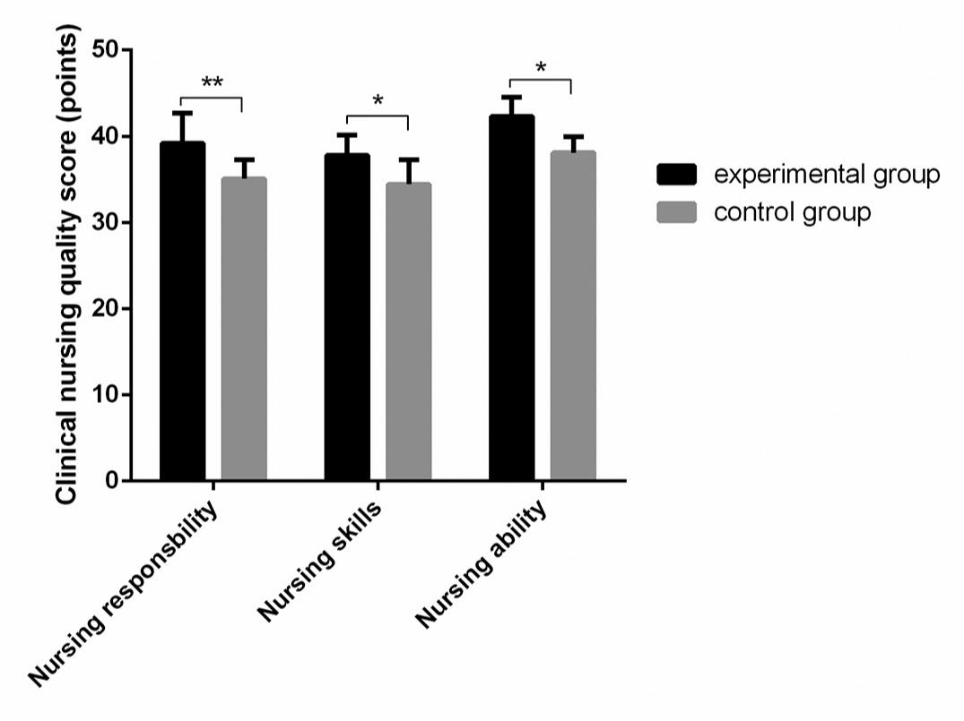 Note: **There were significant differences in nursing responsibility between the two groups (P < 0.05); *indicates that there were significant differences in nursing skills between the two groups (P < 0.05); *There were significant differences in nursing ability between the two groups (P < 0.05).