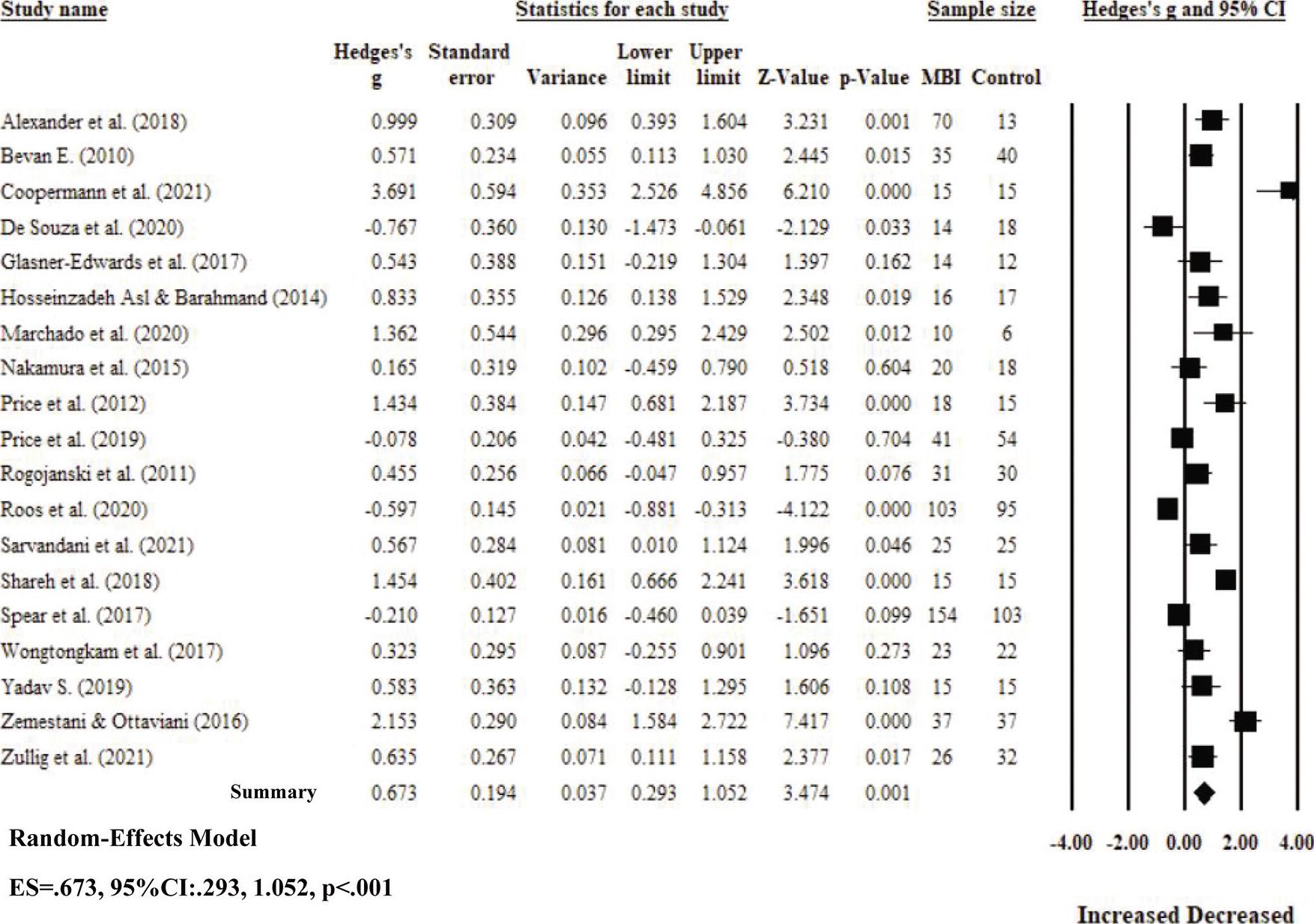 ES of MBI vs control groups.
