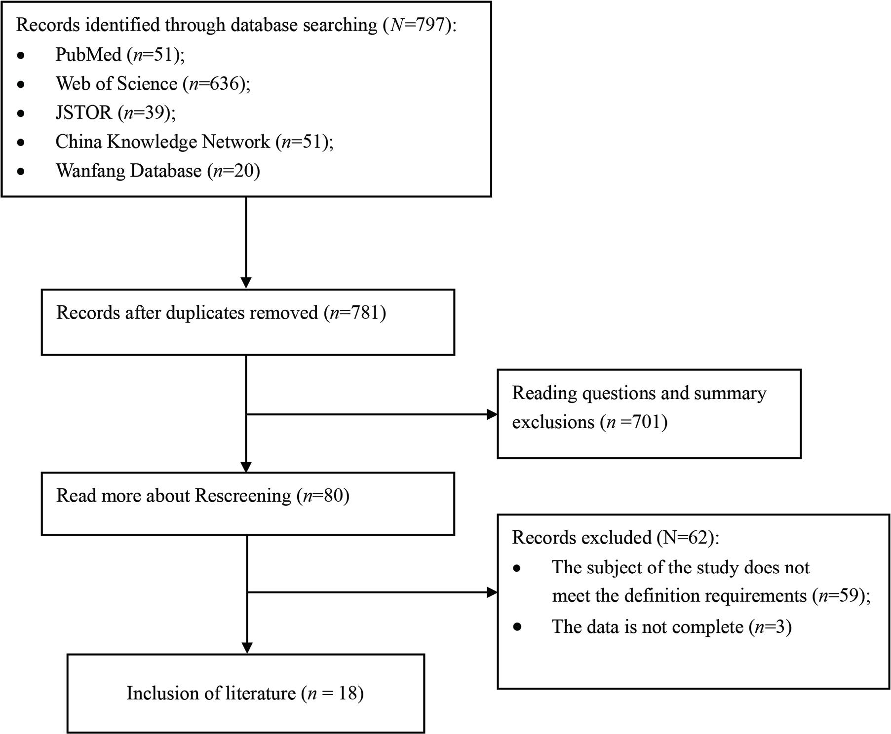 Two researchers independently searched the PubMed, Web of Science, and JSTOR databases. A combination of subject terms and free words was used for the search. The details of the search strategy used for PubMed are shown in Table 1.