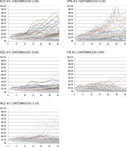 Pfau (2010) conducted the first major study to examine the issue of safe withdrawal rates from a larger selection of countries. This study replicates the methodology of Bengen (2006) by using the Dimson, Marsh, and Staunton (2012) data from 1900 through 2008 for 17 developed countries. The analysis provides some interesting results finding that the 4% withdrawal rate is not safe when using the original Bengen (2006) maximum safe withdrawal rate criterion. The findings show that, even with the assumption of perfect foresight, the maximum safe withdrawal rate exceeds 4% in only 4 of the 17 countries, range between 4% and 2% in a further eight countries, and are less than 2% in five countries.