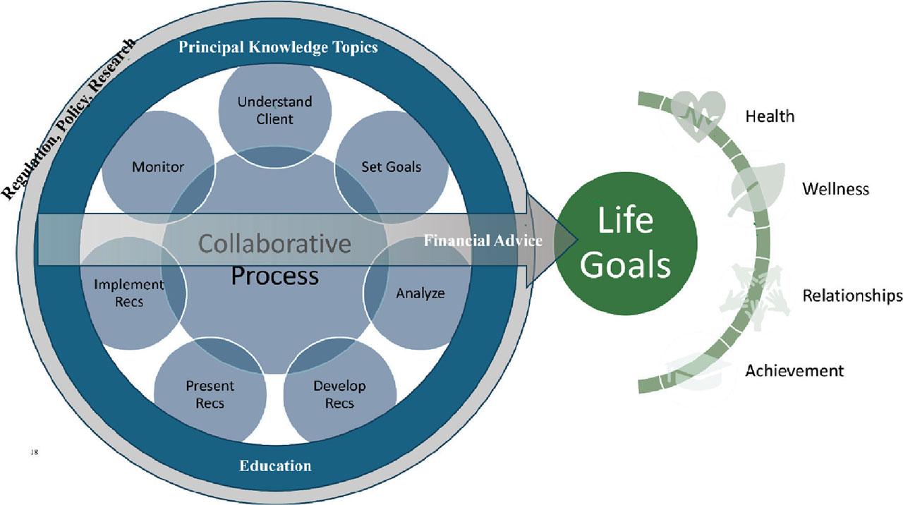 The CFP Board’s practise standards guide this collaborative process, which could include other parties within the client’s and financial planner’s social sphere, such as allied professionals (e.g. accountants, attorneys) or others (e.g. friends, family, colleagues). The term collaboration places the client’s and financial planner’s social networks into the foundation of the personal financial planning process, which then influences outcomes. Next, this definition illuminates that personal financial planning is a process that unfolds over time with broad and impactful client outcomes through life goals. Furthermore, this definition reflects the possibility of variable outcomes, as the goal is not to secure life goals but to ‘help[s] maximize the Client’s potential’ for meeting them, indicating that the outcome varies significantly based on the underlying collaborative process and inputs. Further, the CFP Board definition focuses on the word help in that it modifies the client’s potential; in other words, the professional intervenes within the context of a helping relationship to influence the process of maximizing the client’s potential. From a research perspective, the financial planner’s capability to help the client achieve life outcomes would be viewed as a moderator to the relationship between the client’s inputs and outcomes that they could achieve on their own, consistent with financial planning client interaction theory (Asebedo 2019)—the relationship between client characteristics and life outcomes will vary based on the professional’s level or quality of help. The CFP Board intentionally uses life goals as the primary outcome of personal financial planning. Financial goals serve a secondary function as a means (amongst others) to achieve the client’s life aspirations. The CFP Board also notes that financial advice is the financial planner’s intervention tool that sets the boundaries for the scope of advice, and it is through this advice that the financial planner can help a client maximize life outcomes. Last, this definition demonstrates that personal financial planning is complex and has significant depth, integrating the client’s personal and financial circumstances, which can vary from client to client. These circumstances are inputs to the process that interact with professional financial advice to maximize the potential for meeting client life outcomes.