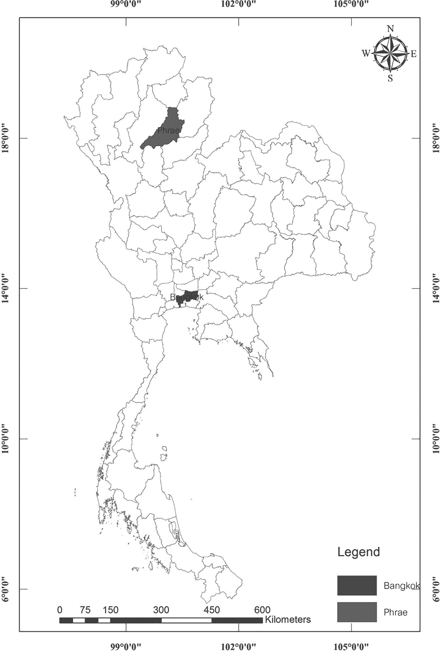 The study area is located on a limestone hill in Phrae Province, northern Thailand ca. 550 km from Bangkok (17°70′–18°84′N, 99°58′–100°32′E) (Figure 1). The site spans elevations (Elv) of 320–460 m a.s.l. The mean annual temperature and rainfall are 32 °C and 189.6 mm, respectively. The region experiences two main seasons: (i) the wet season (May–October; mean rainfall and temperature of 159 mm and 32.6 °C, respectively) and (ii) the dry season (November–April; mean rainfall and temperature of 23 mm and 25.6 °C, respectively). The dry season is subdivided into cool-dry (November–January) and hot-dry (February–April) sub-seasons (Meteorological Department, 2019).