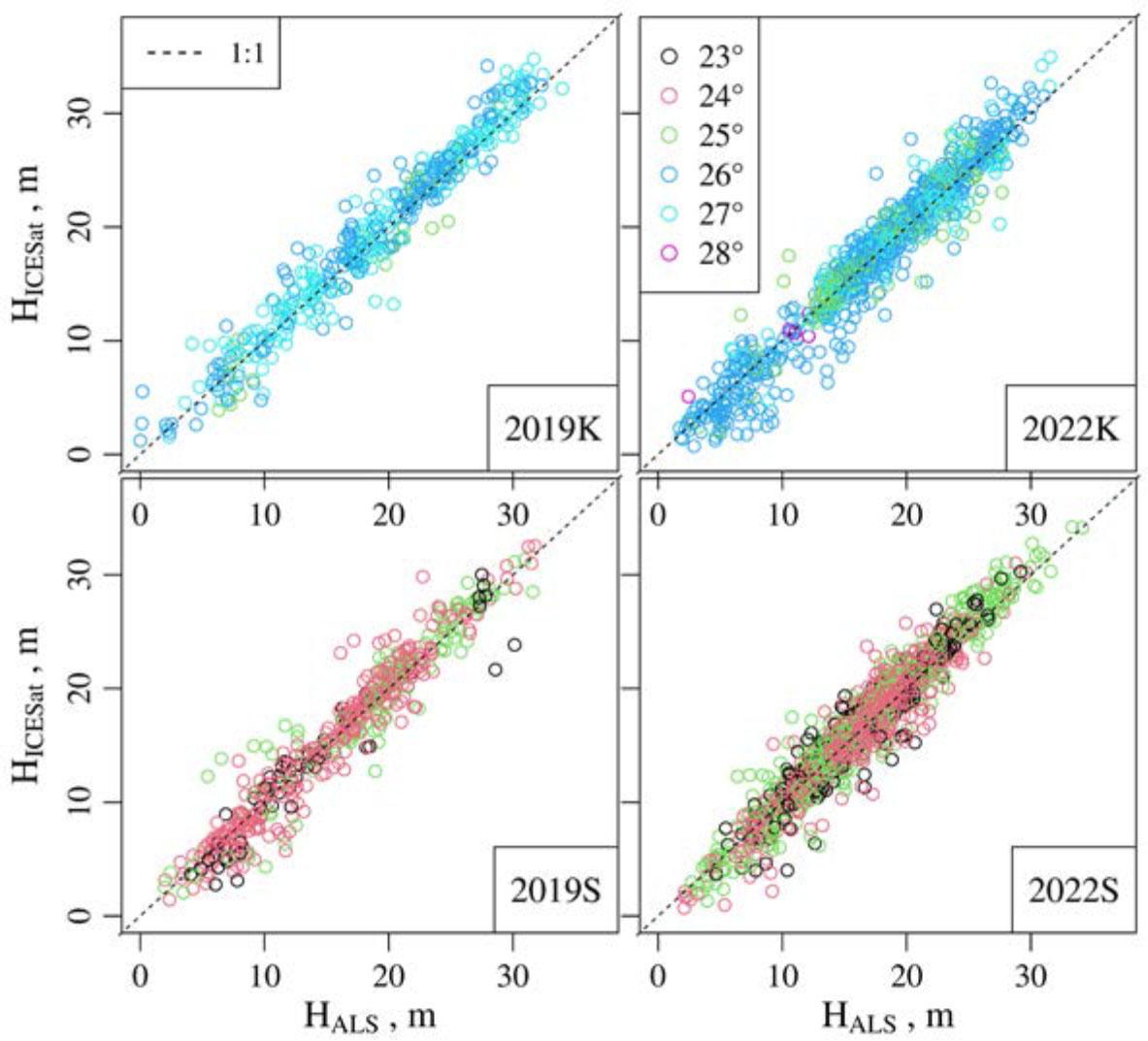 | Eq. No | Year | Veg.p | Intercept | HALS (m) | KALS (%) | Conifers | Peatland | Weak. beam | GT1R | GT2L | GT2R | GT3L | GT3R |