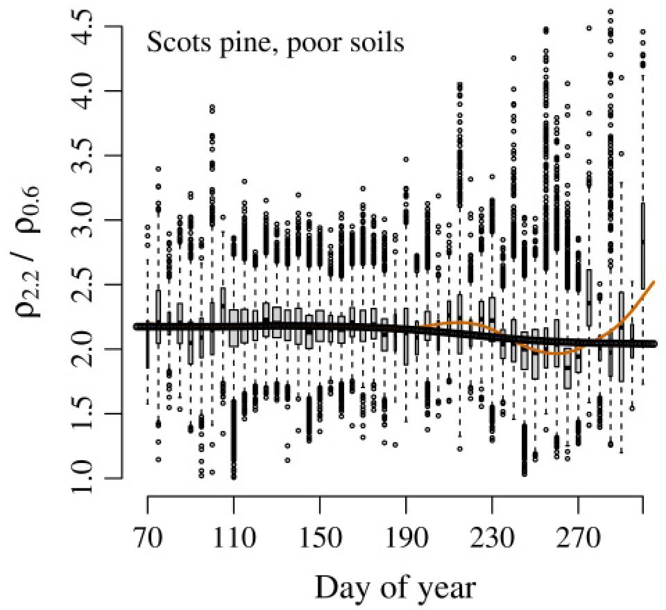 | Evergreen needleleaved | Norway spruce, Scots pine | >85 | all |