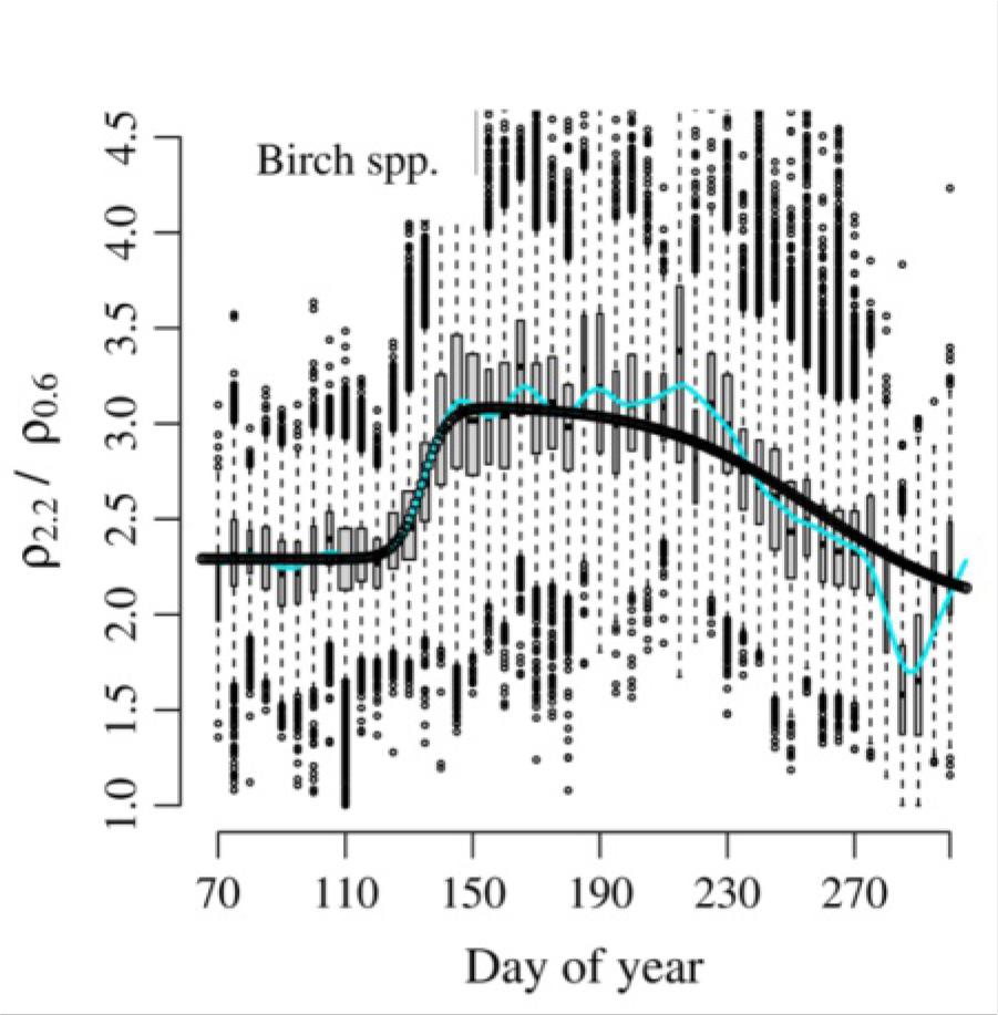 | Birch spp. (KS) | 6.3 × 105 | 0.46 | 0.63 | 2.29 | 1.23 | 0.90 | 135.0 | 4.00 | 255.0 | 25.0 |