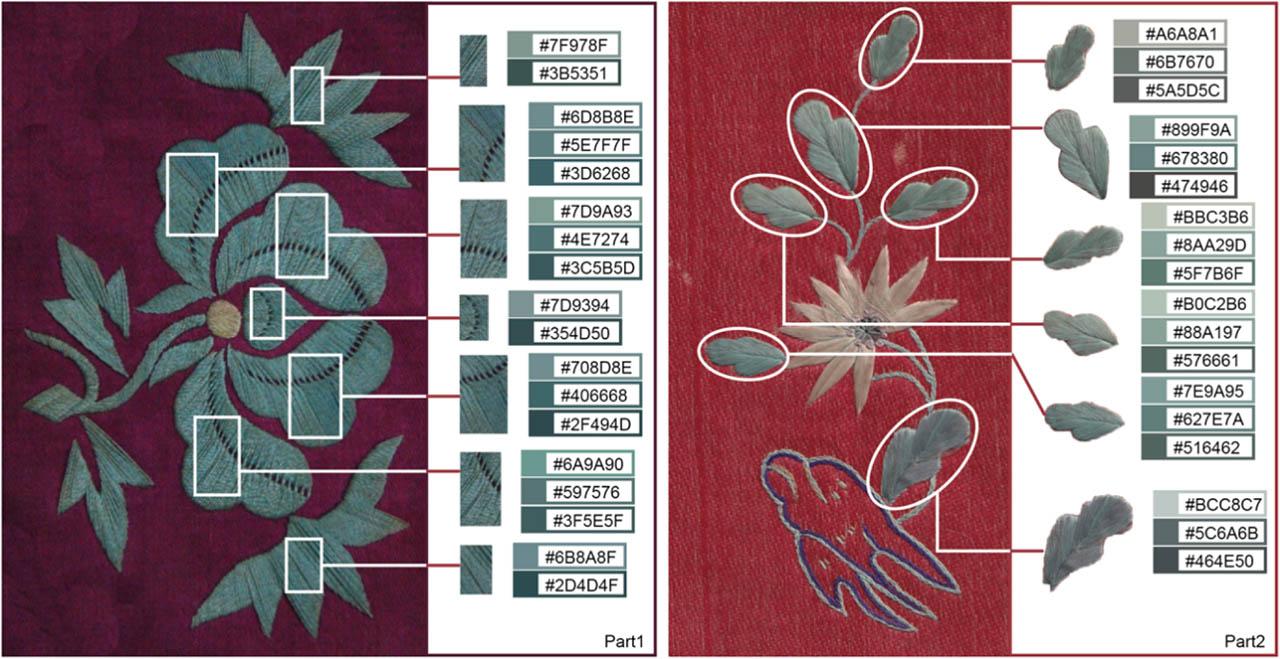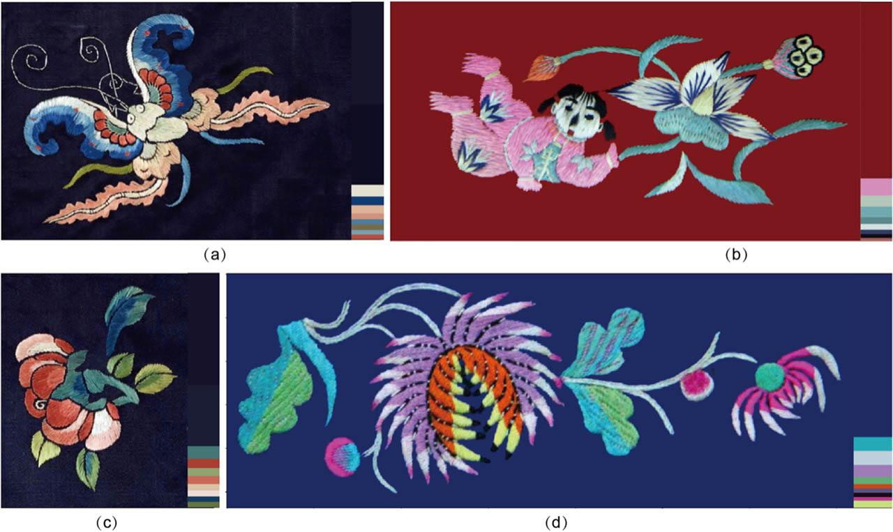 Ancient Chinese embroidery refers to the traditional skill of hand-embroidered patterns on wool, hemp, silk, cloth and other fabrics according to pre-designed colours and graphics. As one of the oldest handwork skills in China, this unique embroidery style with high artistic values and cultural merits has been formed throughout history [1] and is still in use. The majority of local traditional embroidery skills in China have been listed as national intangible cultural heritages, which need digital protection and inheritance. Ancient embroidery is also one of the important sources of oriental inspiration [2] and design elements for designers today.