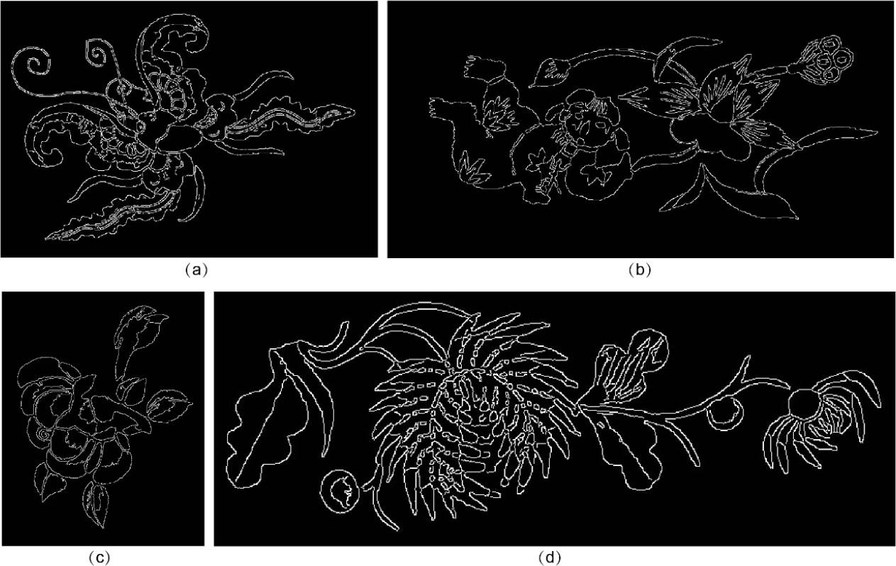 K-means++ clustering parameters were set according to the number of colours in the image and thus were different among images. After many experiments, we tried to combine a variety of high and low thresholds and finally selected 1200 and 200, respectively, which are more suitable for the calculation of embroidery images. Contour extraction after the threshold setting can avoid the extraction of redundant contours (Figure 15).