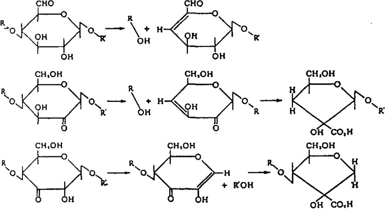 Alkaline degradation of celluloses containing C6, C2 and C3 carbonyls