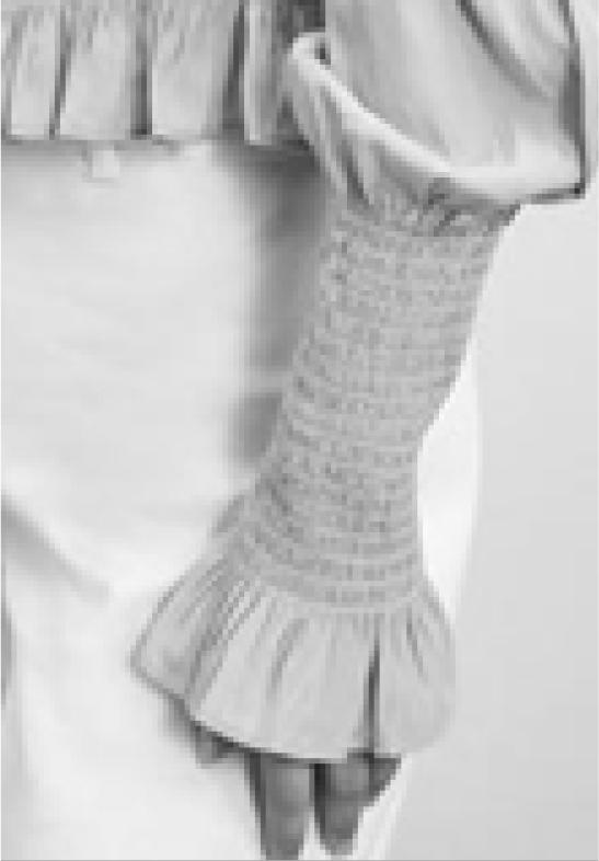 Before the appearance of elastic fiber, in order to conform to the curve of the human body, smocking technology was often used on the chest, waist, cuffs, neckline and other parts. The shape of the fabric can be changed through smocking technology to adapt to the radian produced by local parts, which was both functional and decorative. Since the 1950s, with the emergence of elastic fibers, in smocking technology more attention has been paid to decoration. Today, smocking craftsmanship is widely used in local brand clothing from four aspects: pattern, arrangement, fabric, and technology, mainly in the form of overall shape and partial embellishment.