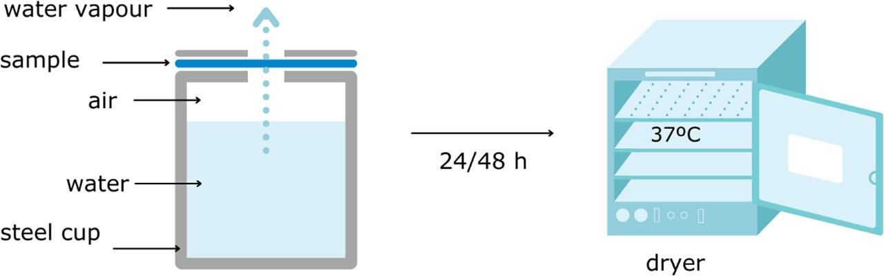 The moisture vapour transmission rate (MVTR) in contact with water vapour was determined using the guidelines, as defined in EN 13726-2:2002 [31] (Fig. 5)