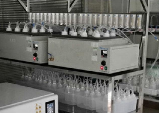 CO2 Measurement Method: CO2 can be measured directly in the exhaust gas of the composting vessel using a continuous infrared analyser or gas chromatograph, or it can be completely absorbed by an alkaline solution and the dissolved inorganic carbon measured using titration or total organic carbon analyser methods to calculate CO2 production. This study used an alkaline solution to completely absorb the CO2 released from the composting vessel, and the amount of CO2 produced was calculated using a hydrochloric acid standard titration solution to measure the dissolved inorganic carbon. Different analytical methods vary in cost, operational convenience, and precision.