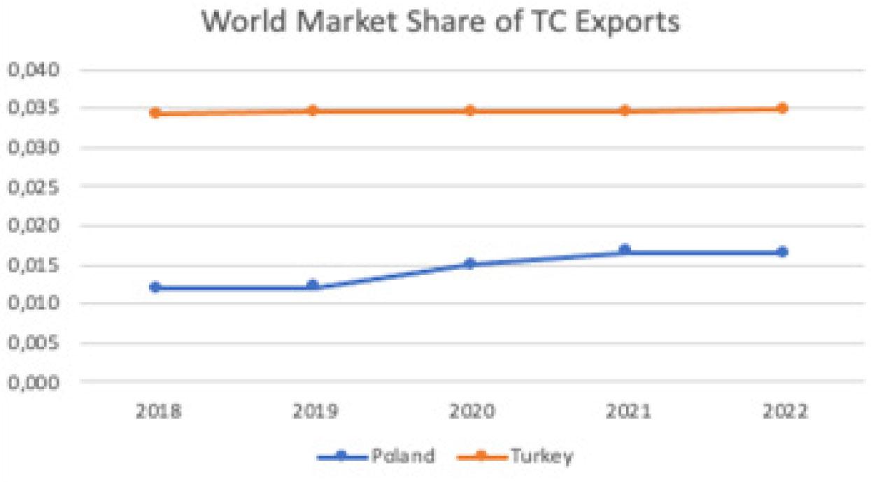 World market share of Polish & Turkish TC Industries (created by the author with data from the World Bank)