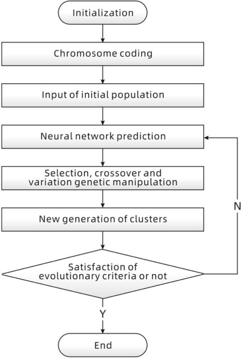 With the conversion of the above rules, all variables have been converted to continuous type coding, which can be conveniently used for floating-point coding. Each design element occupies a piece of the gene, thus constituting a chromosome with 7 gene segments. Finally, the chromosomes were implanted into the BP neural network, and a fitness calculation function program was written and run in an M function file in MATLAB.