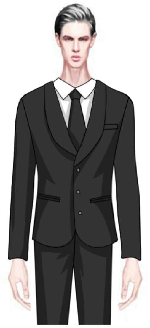 Men’s clothing began to change from the French Revolution in 1789, shifting from a luxurious aesthetic to one characterized by simplicity and functionality [33]. The 2025–2031 China Men’s Suit Industry Market Analysis and Trend Forecast Report suggests that the design trend of suits integrates natural shoulder lines and a slightly cinched waist, balancing formality and casualness, suitable for various occasions. The optimized V-shaped silhouette aligns with the slightly cinched waist trend, while the shawl collar adds a casual touch to the outfit, making it more comfortable to wear in various scenarios. The double besom pocket design adds a touch of sophistication, and black represents the fashionable color favored by consumers. Research indicates that black is the most preferred color for fashionable outerwear among consumers [34].