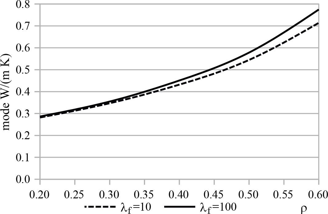 Extreme values of the effective thermal conductivity and their relative difference for λf =100 W/(m·K)