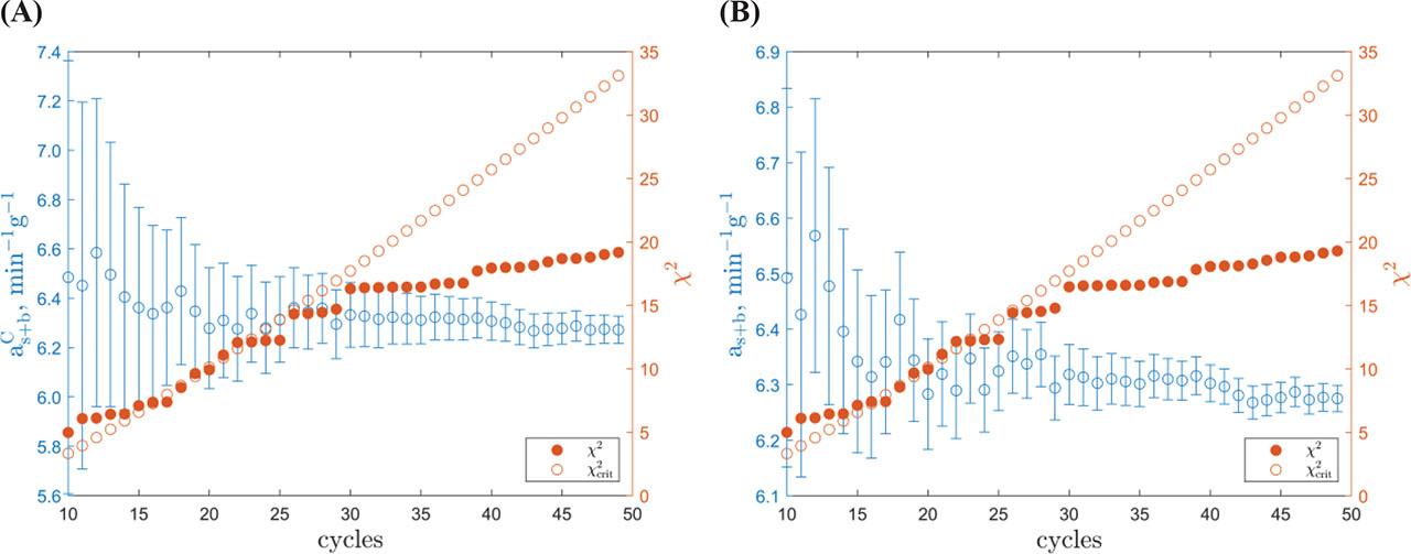 However, it is essential to acknowledge the limitations of this method. Firstly, it requires a relatively large number of cycles (35 or more) and a lengthy measurement time in each cycle (around 3–4 h). Consequently, the overall measurement time for a single sample is longer than what is typically used. Furthermore, it is important to note that this method is specifically applicable to freshly prepared benzene samples with a significant level of 222Rn contamination. The count rate within the radon and daughter products window needs to be sufficiently high to overcome the inherent randomness of decay.