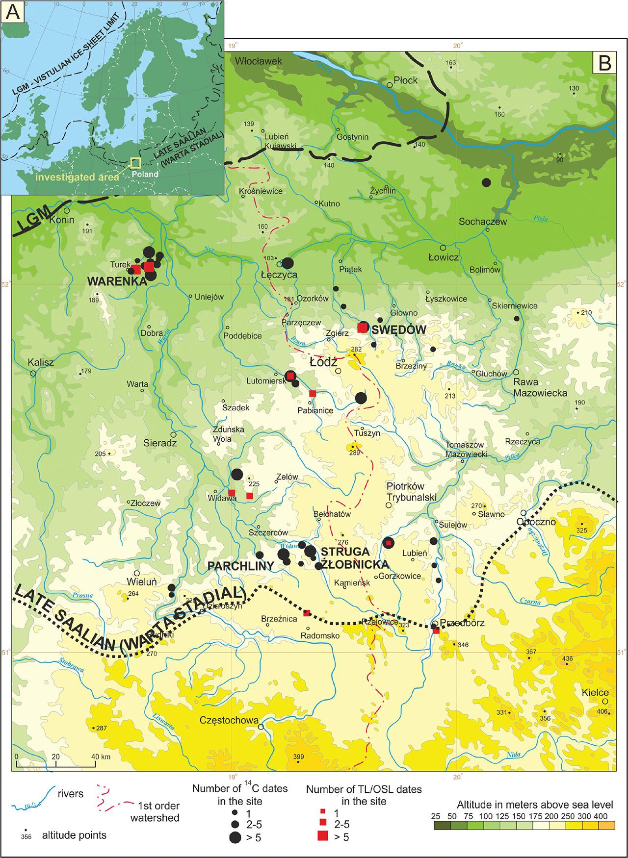 | 166 | Folwark 8; B/2742 | 19.27 | 51.22 | 199 | plant macrofossils | GrA-3016 | 22990 ± 120 | AMS |