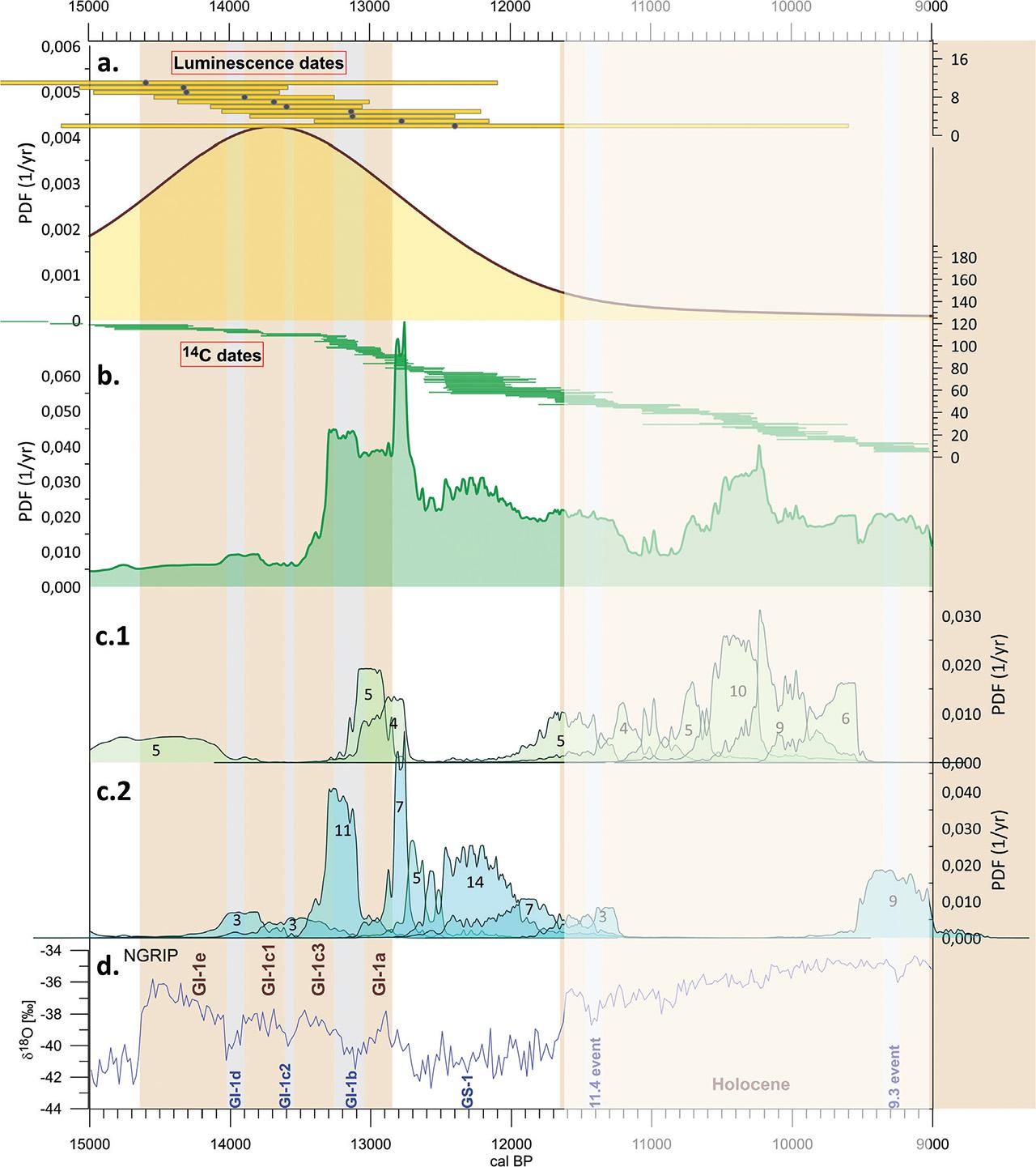 | 18 | mud and clay enriched in humus horizon | Gd-4343 | 14300±300 | GPC |