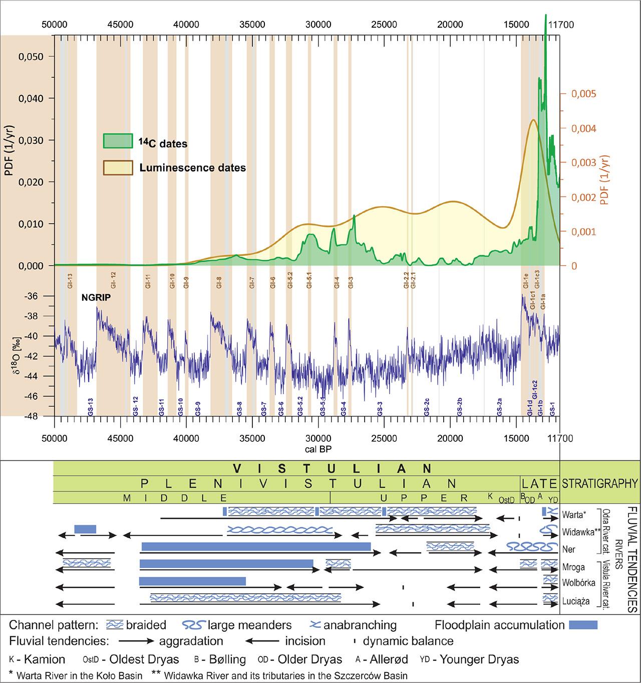 | 35 | Koźmin | 18.67 | 52.08 | 97.5 | charcoal in flood sediments | GdA-6077 | 10480±50 | AMS | unpublished |