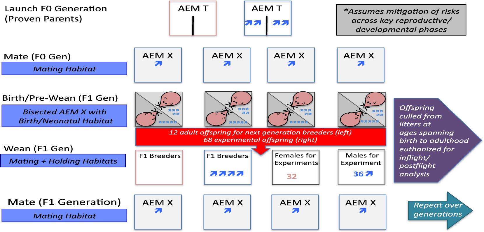 Roadmap to Multiple Generations (Rat) in Microgravity. AEM T (Animal Enclosure Module–Transfer); AEM X (Animal Enclosure Module–ISS Housing).