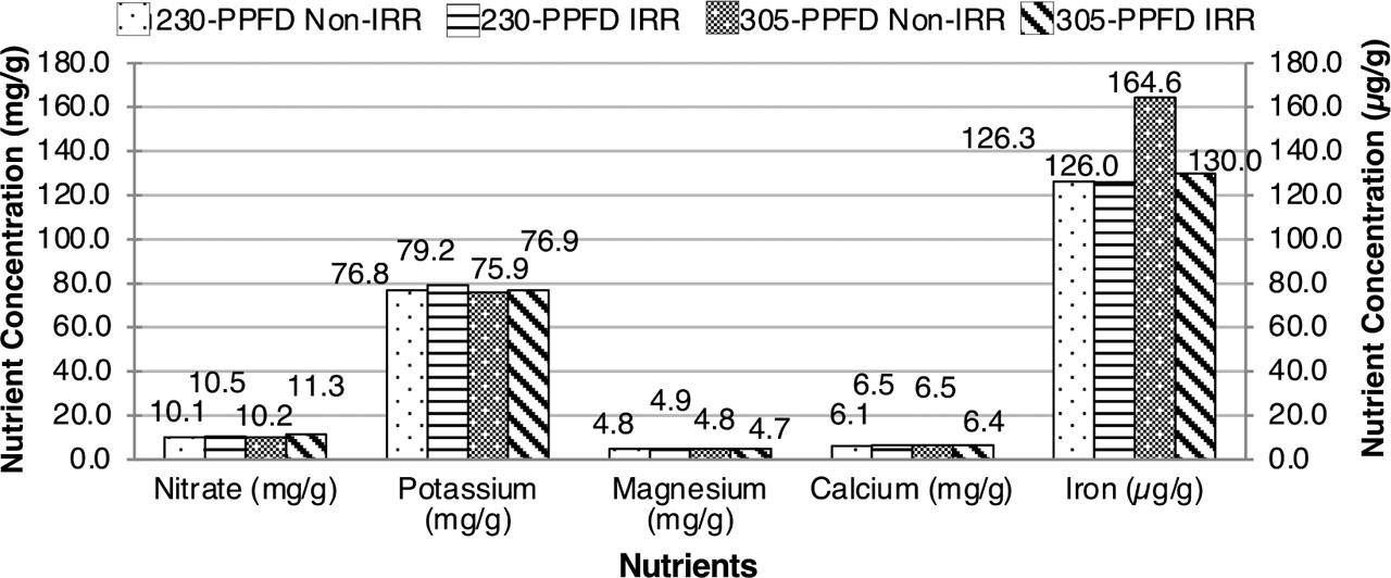 | 230 PPFD NonIRR | 230 PPFD IRR | 305 PPFD NonIRR | 305 PPFD IRR | |
