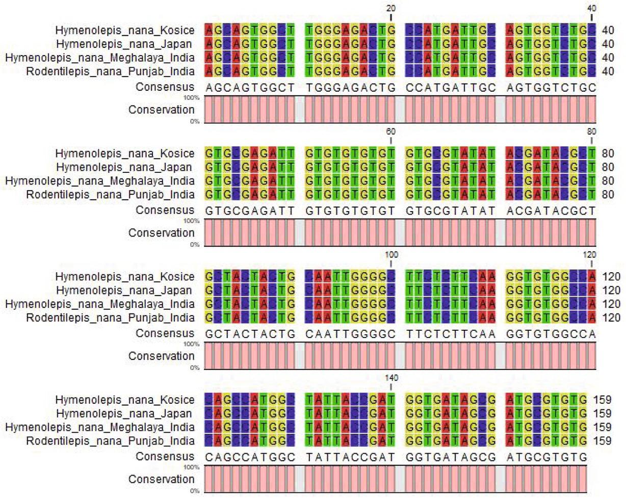 Multiple alignment of H. nana (Punjab, India) with different geographical isolates.