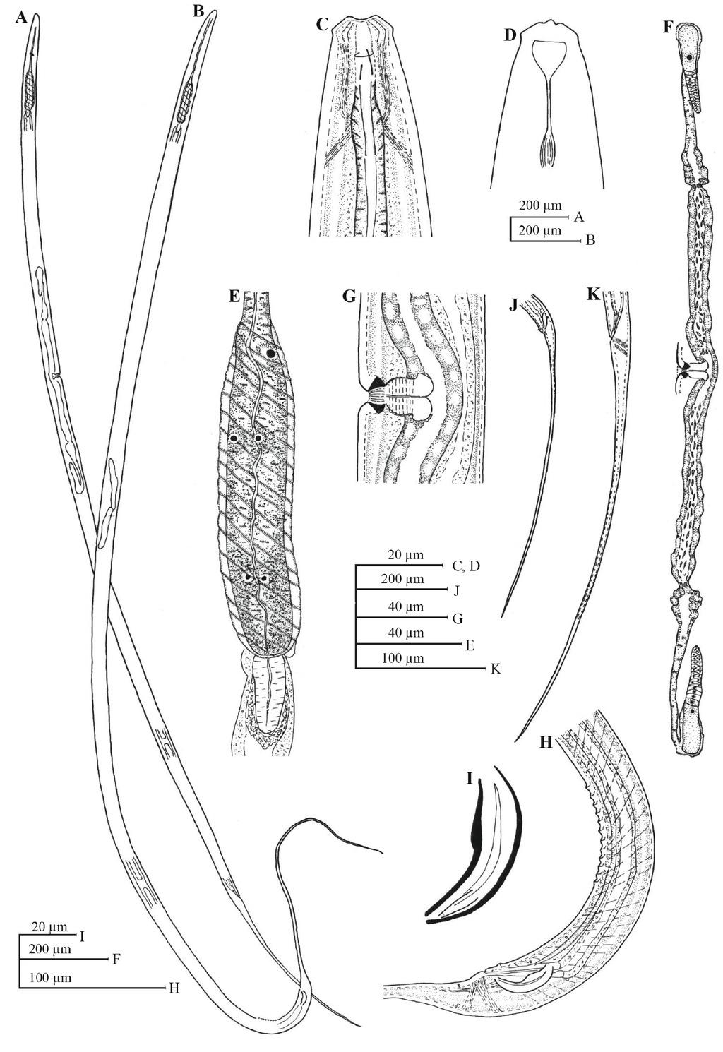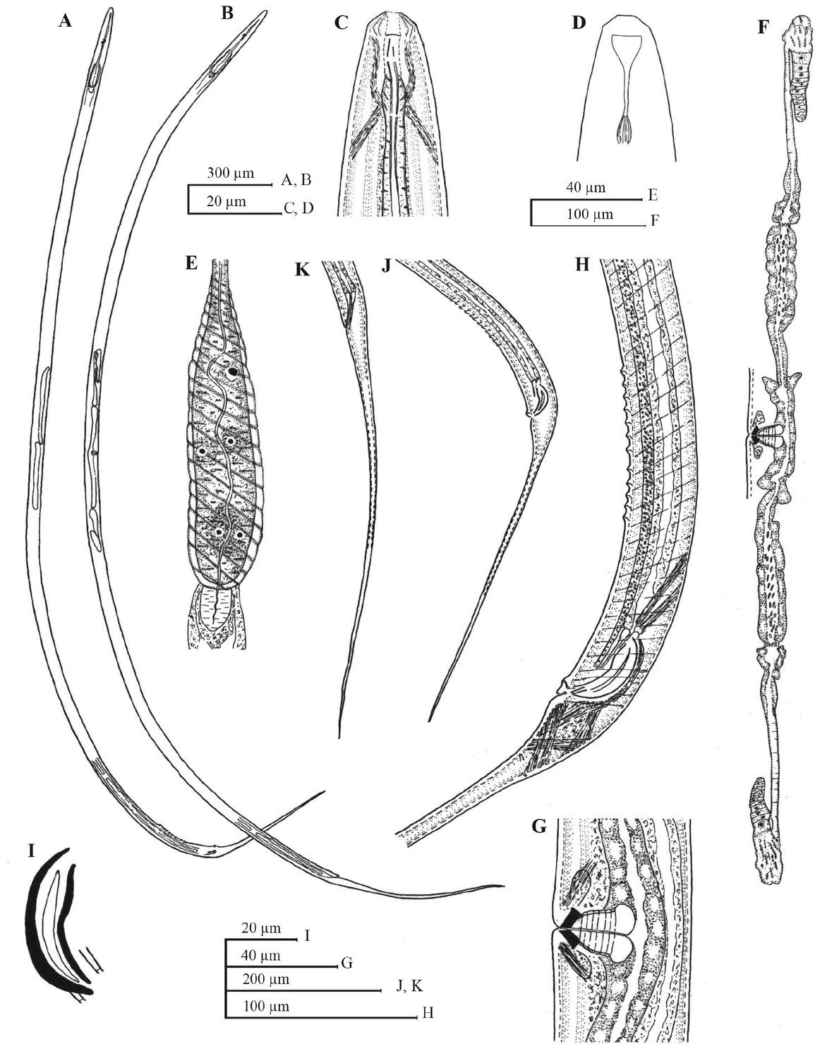 | Body width at anus/ cloaca | 30 | 31 ± 1.4 (30 – 33) | 33.8 ± 1.8 (31 – 36) | 32 |