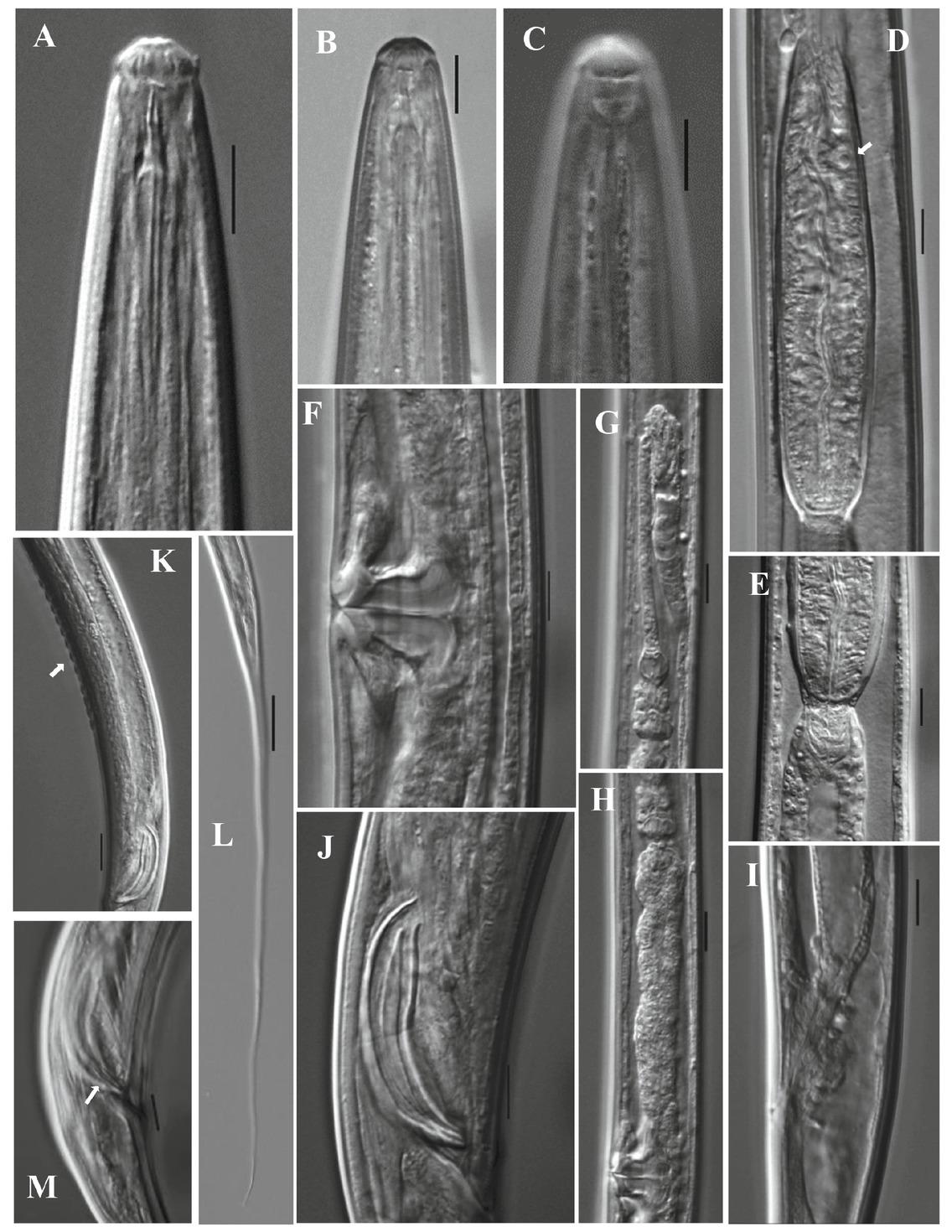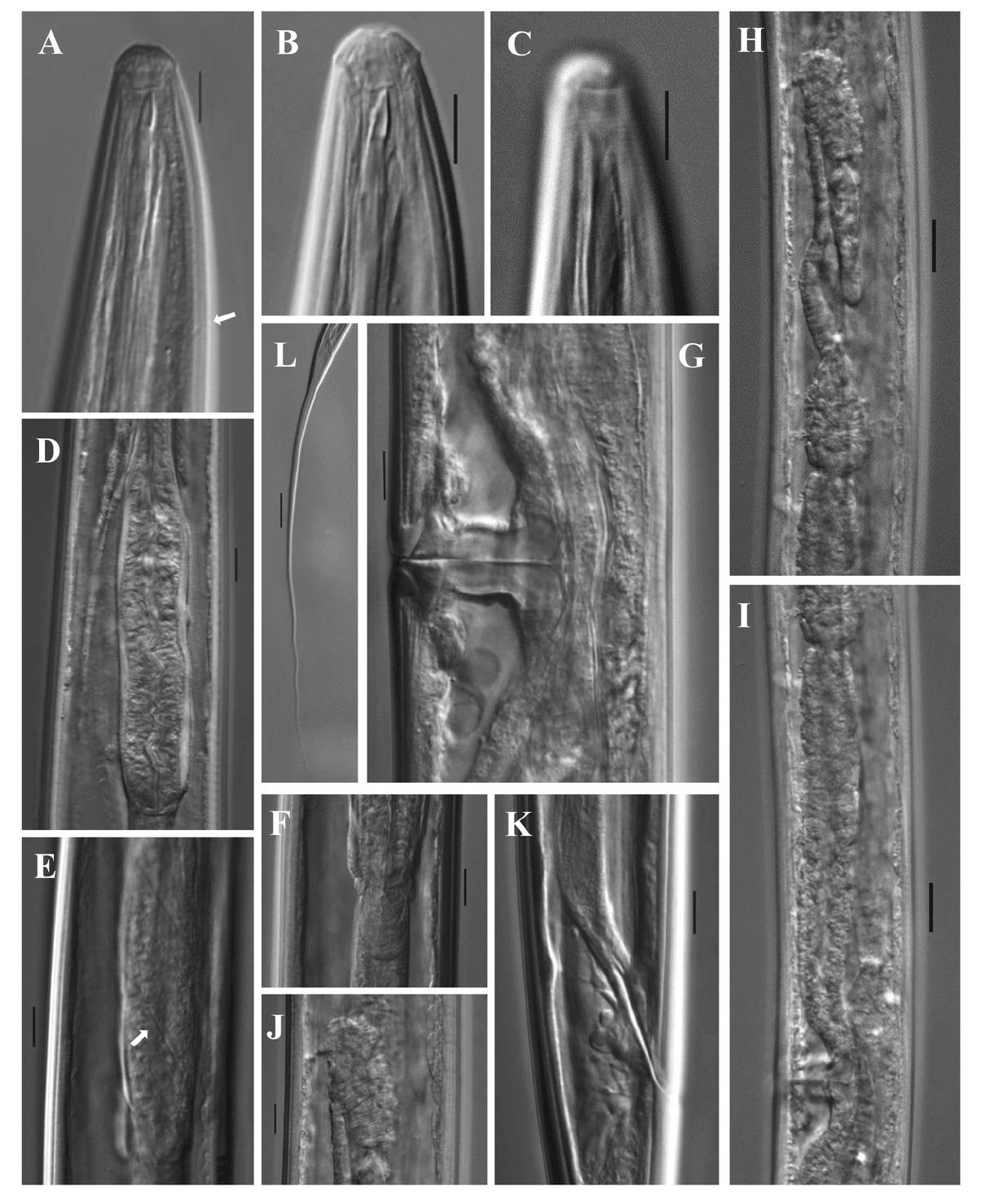 | Character species | n | L | a | b | c | c' | v | Lrd | Odont. | Neck | Ph.exp. | Abd | Prerect. | Tail length | Vms | Spicule length | Geo. Dist. | References |