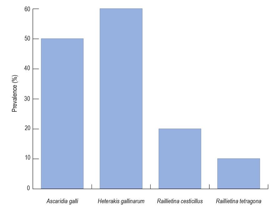 | Ascaridia galli | Different parts of the small intestine | 5 |