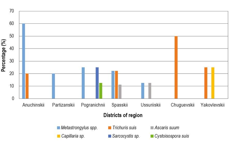 | Species | Metastrongylus spp. | Sarcocystis sp. | Cystoisospora suis | Trichuris suis | Ascaris suum | Capillaria sp. |