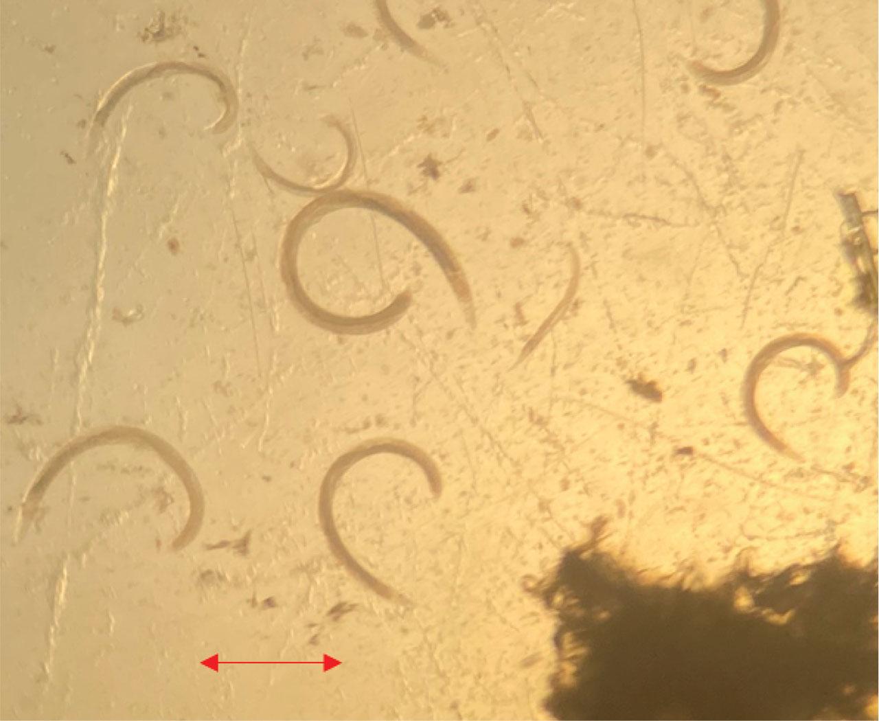 EPNs dissected from H. halys cadaver infected by EPNs (scale bar=1mm).