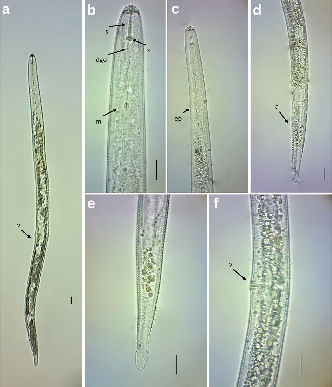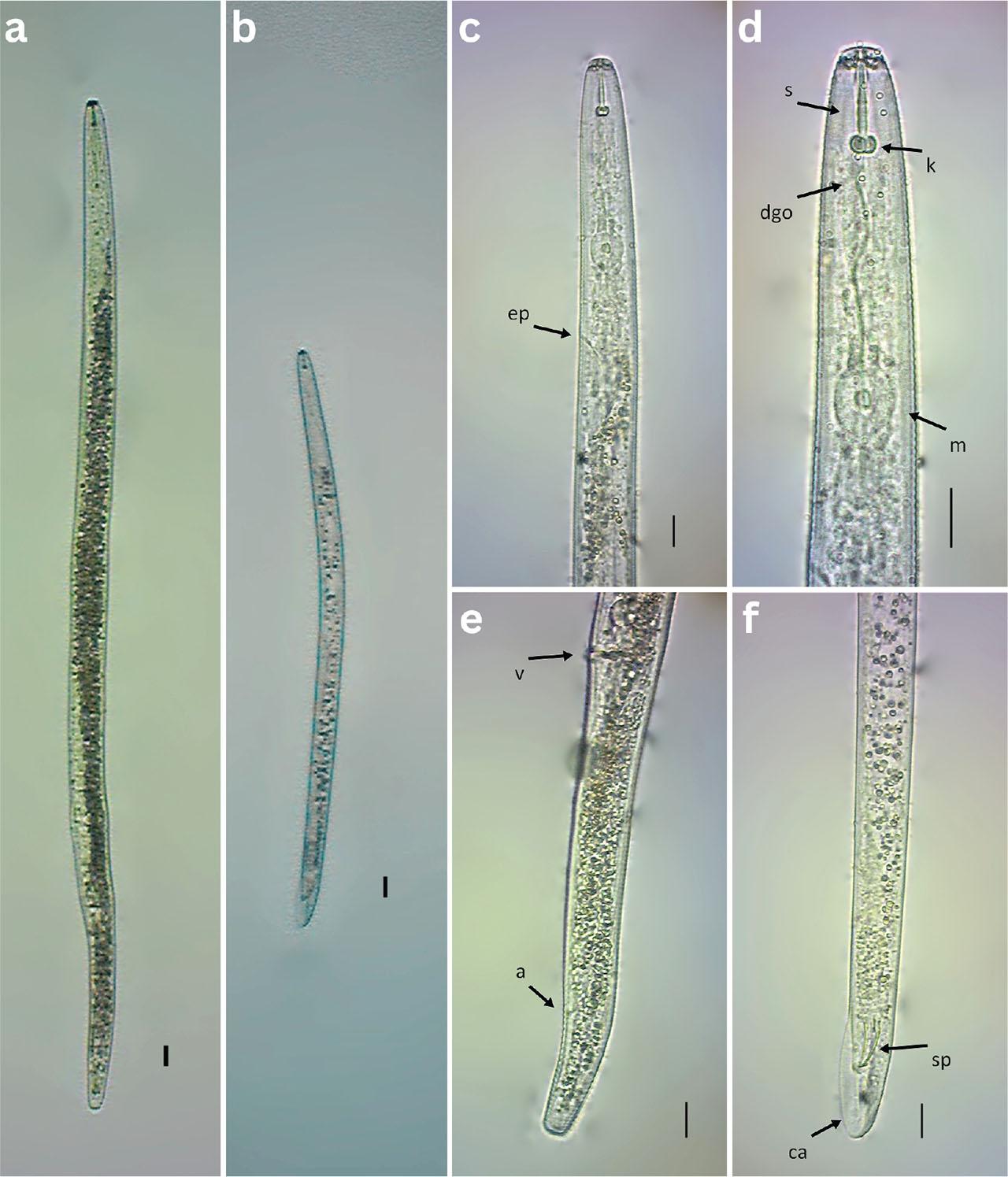 | Anus/cloaca body width | 13 ± 1.8 (9.9 – 15.5) | 11.1 ± 0.9 (10 – 12.2) | 12.5 ± 1.7 (10.5 – 16) | 12 ± 1.1 (10 – 14.6) | - | - |