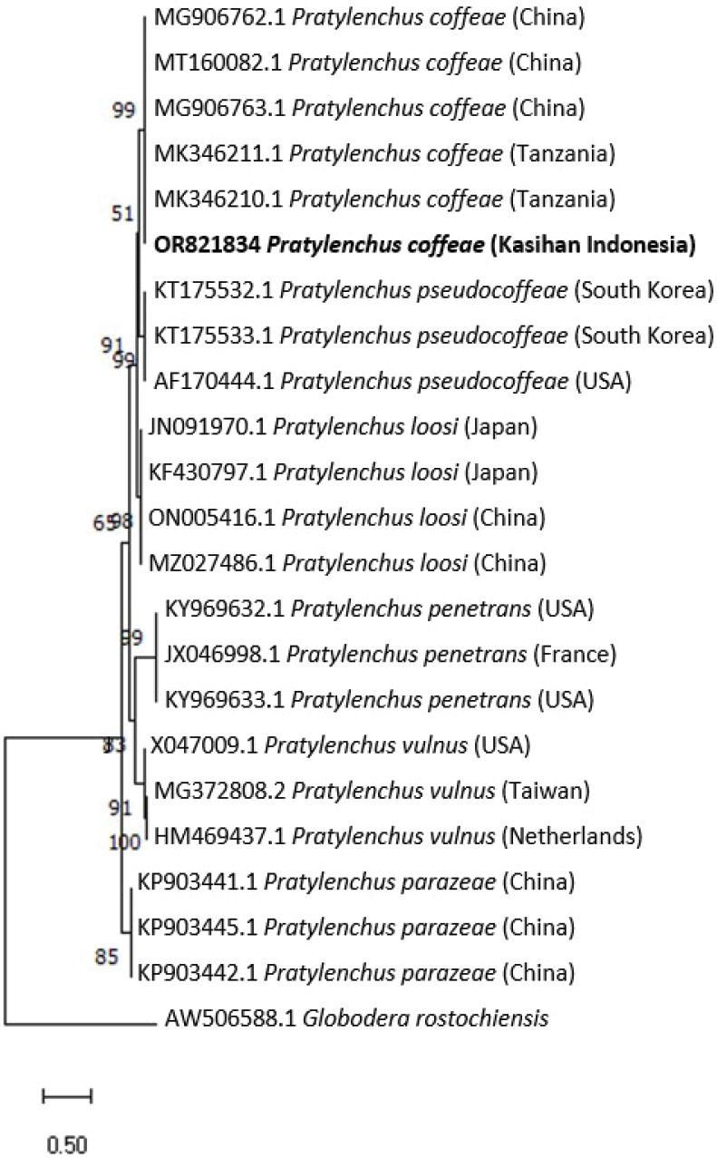 | Species | P. coffeae (this study) | P. coffeae (Budiman et al., 2019) | P. coffeae (Tuyet et al., 2012) | |||