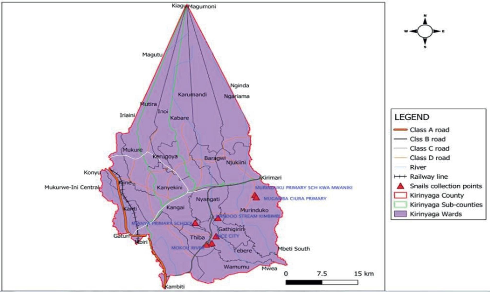 Snail collection points in Mwea Area Kirinyaga Count.