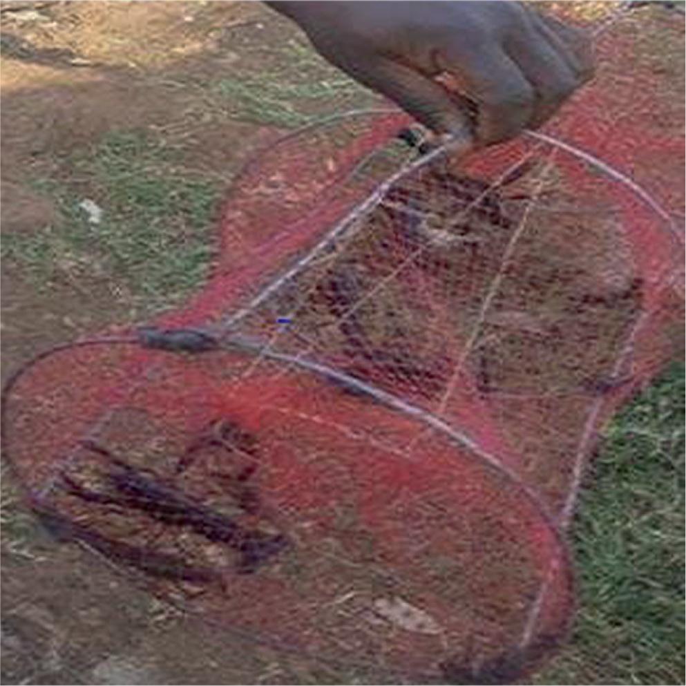 Three crayfish sampling and trapping techniques were employed. Meat-baited traps in water deeper than one meter were used in the initial method. Plastic 1 cm mesh was used to cover a cylindrical wire frame that was around 50 cm in length and 20 cm in diameter. The trap was submerged to remain on the bottom for a predetermined amount of time, typically two hours, after being baited with meat (Appendix 1). When the trap was lifted, Procambarus clarkii were manually removed via the opening after creeping in at both ends and being unable to crawl out. Snail scoops were utilized in the second trapping technique along the canals. Shallow littoral layer of emergent and sub-emergent vegetation (Appendix 2). Third, the community used ripped and frayed mosquito nets, which were dragged down the canal bed for ten minutes, then folded to capture the caught crayfish and taken out (Appendix 3).