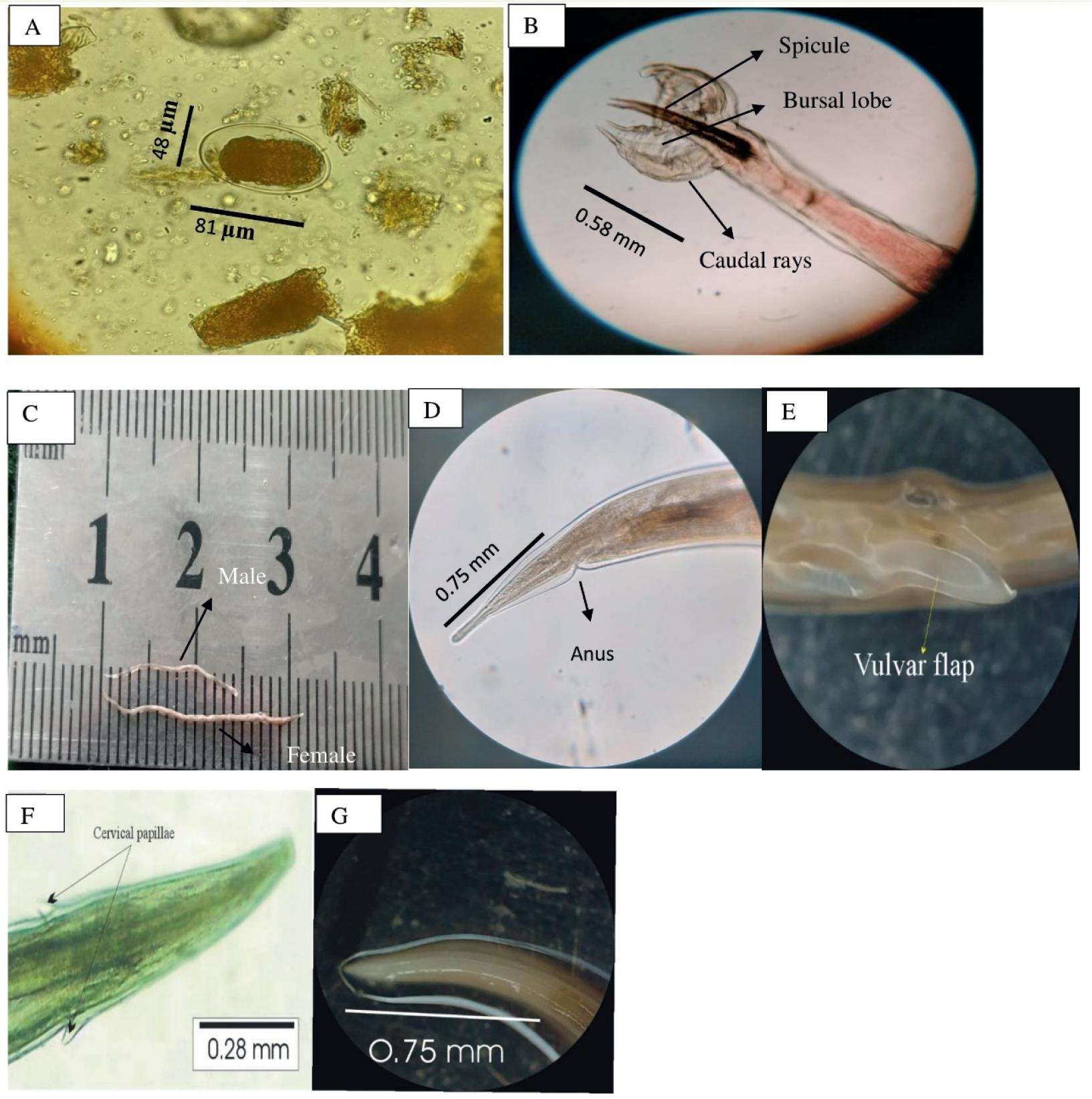 | Distance from vulva to posterior end (mm) | – | 0.68 – 0.82 |