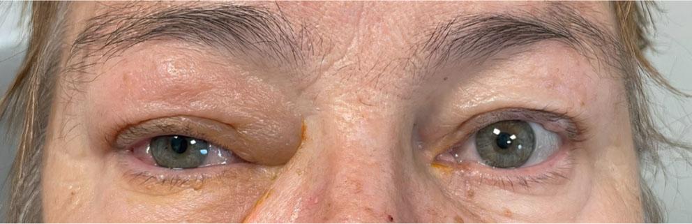 Right-sided upper eyelid oedema and hyperemia.