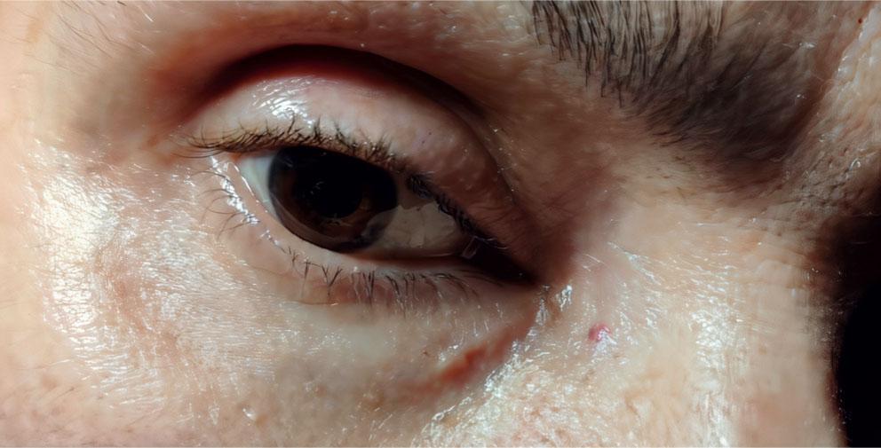 The last case concerned a 50-year-old woman who lived in a rural area and had contact with poultry and a pet dog. She initially noticed oedema of the temporal conjunctiva of the right eye, followed by a mobile, soft nodule on the medial lower eyelid (Fig. 3) and later on the lateral upper eyelid of the right eye. On examination, a soft, cyst-like mass was noted in the right upper lateral eyelid. Surgical exploration was performed but no parasite was found. The patient was treated with doxycycline 200 mg for 10 days and then 100 mg for a further 10 days. Regular follow-up examinations were recommended and the patient had no further symptoms. The patient continues to be examined regularly. All procedures performed in studies involving human participants were in accordance with the ethical standards of the institutional ethical committee and with the 1964 Helsinki declaration and its later amendments. Informed consent has been obtained and signed by from all individuals in this study.