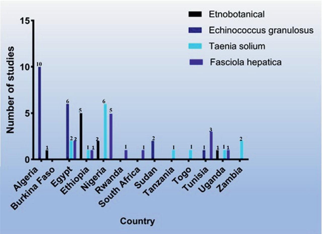 Beyond documenting ethnobotanical knowledge, this review critically evaluated the pharmacological evidence supporting anthelmintic properties of African medicinal plants against E. granulosus, T. solium, and F. hepatica. Although a wide range of plant species are traditionally employed to manage helminth infections, only a limited subset has been experimentally validated, revealing a clear imbalance in research efforts.