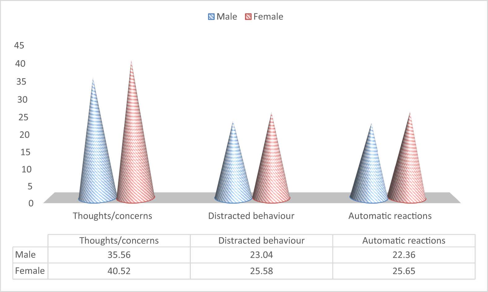 | Thoughts/concerns | 10.967 | 54 | <0.001 | 8.71 | 7.12 | 10.31 |
