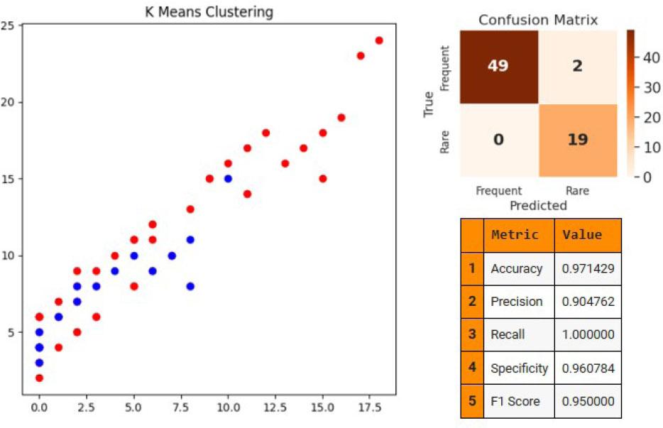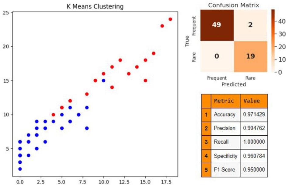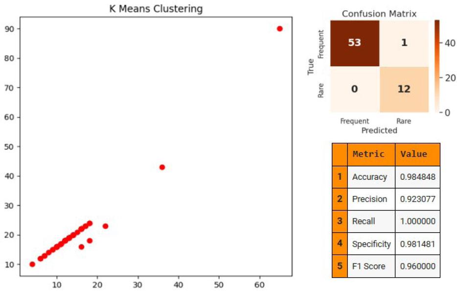 The Elbow Method, a widely adopted technique for determining the optimal number of clusters, has been extensively explored in the clustering literature. The Elbow Method is instrumental in identifying the point at which adding clusters no longer significantly improves variance reduction [39]. Its application in rare pattern mining ensures an optimal balance between granularity and simplicity in clustering solutions.